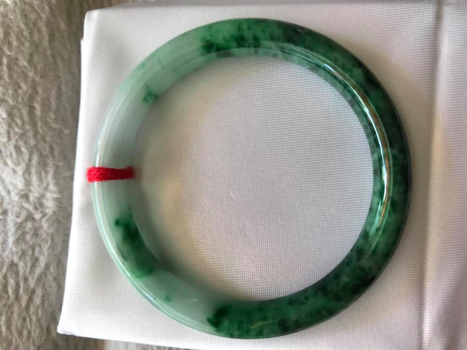 VÒNG BẢN HẸ A SIZE 49 ĐÁ CẨM THẠCH TỰ NHIÊN MÀU XANH LÁ ĐẬM Ở GIỮA LAM TRẮNG ĐỀU VÒNG NỮ 42KG ĐẾN 52KG ĐEO Ạ Sản phẩm này là tài sản cá