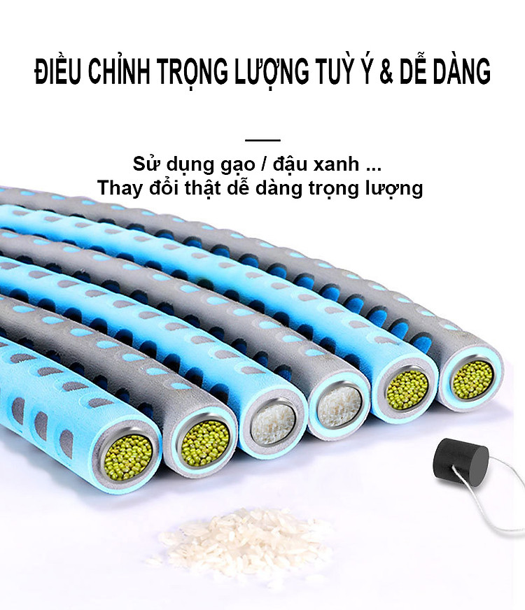 Có thể điều chỉnh trọng lượng tuỳ ý nhờ vào việc cho thêm Gạo / Đậu/Sỏi vào các lõi mảnh ghép.