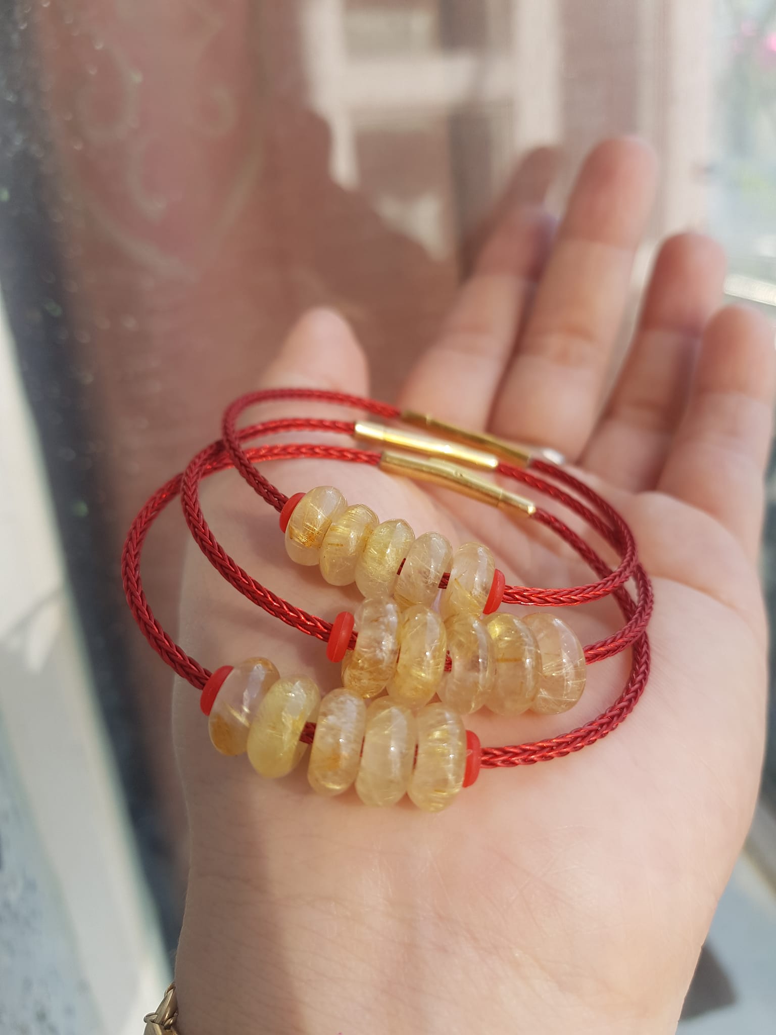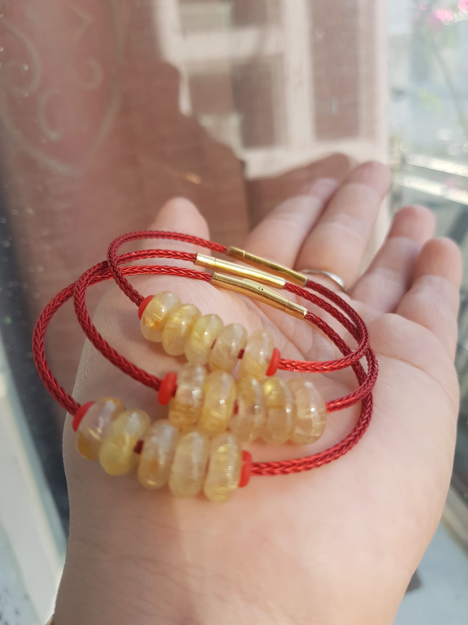 Đá thạch anh Vàng tự nhiên dây đỏ tài lộc