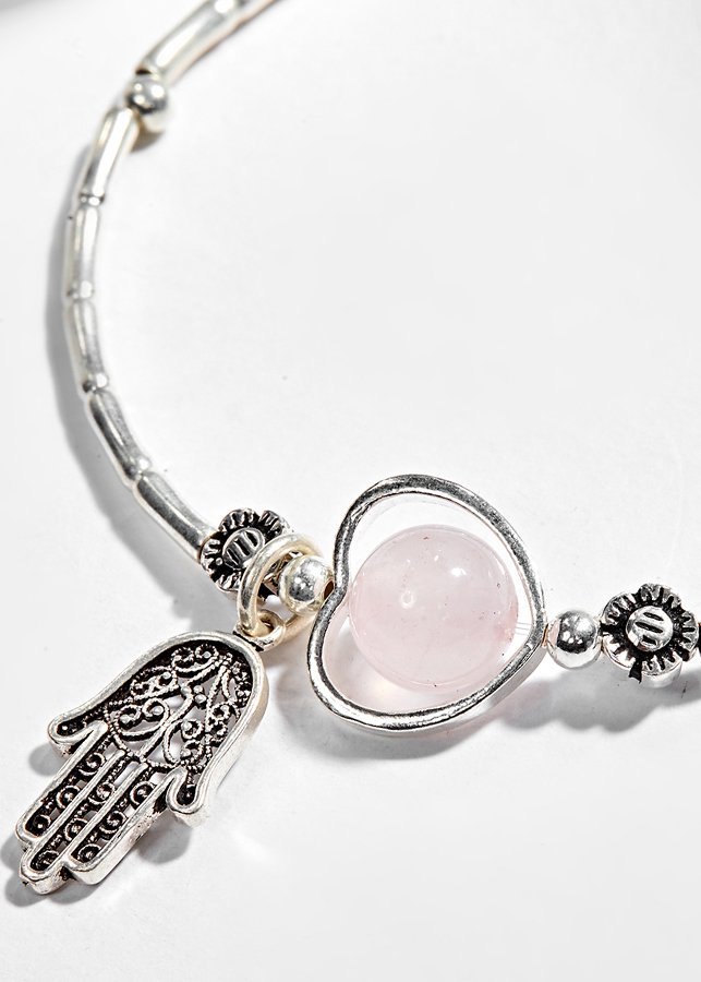 Vòng Tay Bạc 1 Hạt Đá Thạch Anh Hồng Phối Charm Bàn Tay Hamsa Bạc phù hợp với những người mạng Hoả và mạng Thổ, mang lại may mắn và sức khoẻ cho người đeo mệnh này.