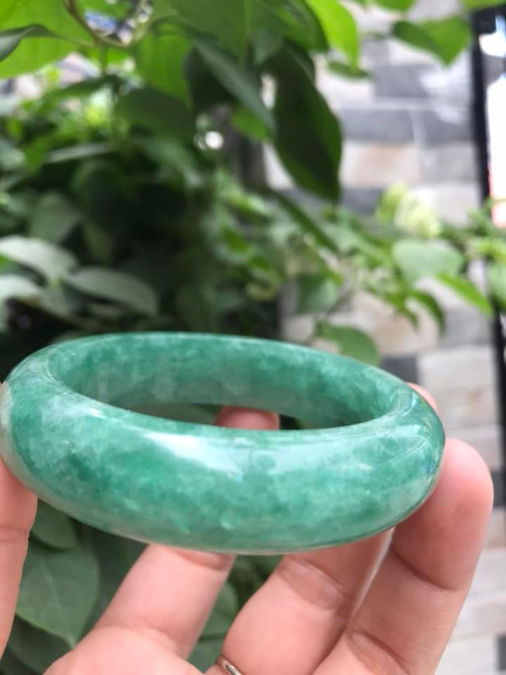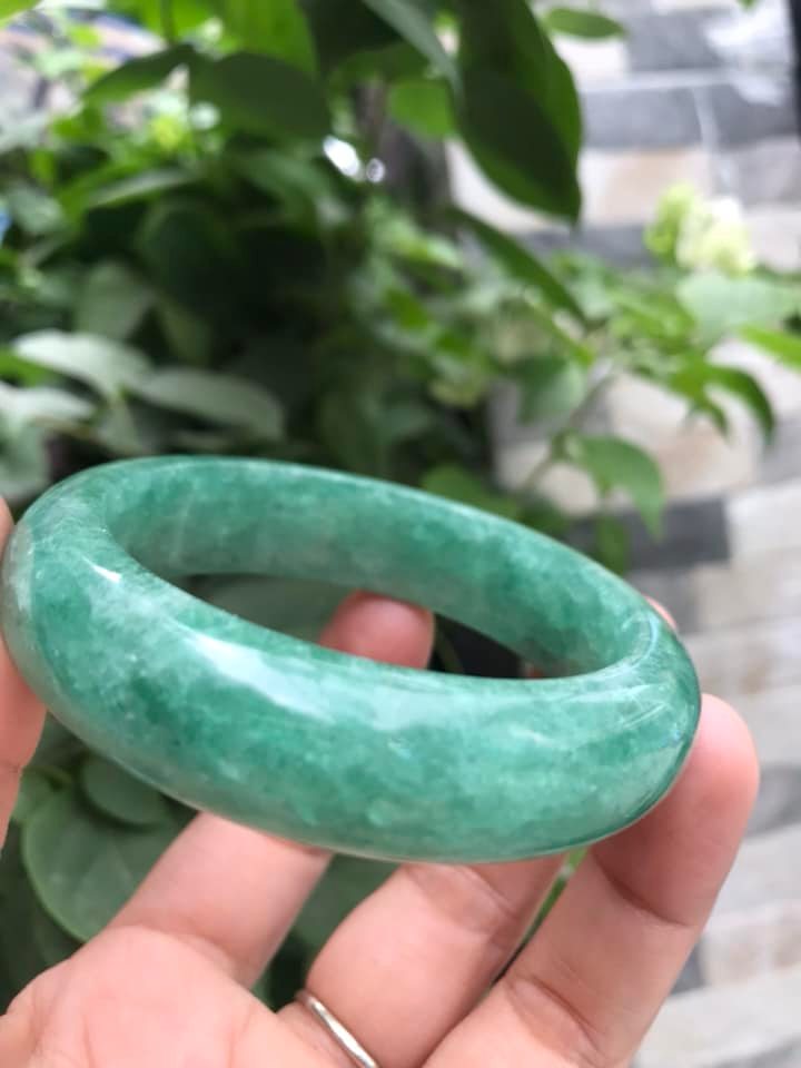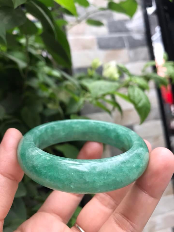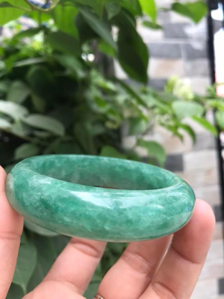 Vòng tay Nữ Đá Cẩm Thạch mới TR Lý 57 mm x cọng 7,5mm Màu Xanh lý tươi trắng 2 bên đều vòng đẹp Nữ 55kg - 64kg đeo đẹp món quà tặng chính mình