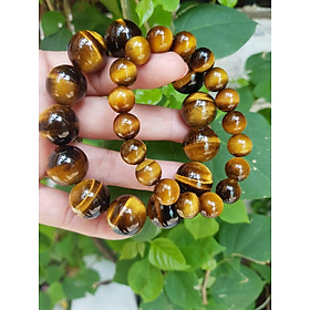 Vòng tay đá mắt hổ tự nhiên vàng nâu nam mệnh kim mệnh thổ size 14ly ạ / Gỗ đá phong thủy Sunny Q8