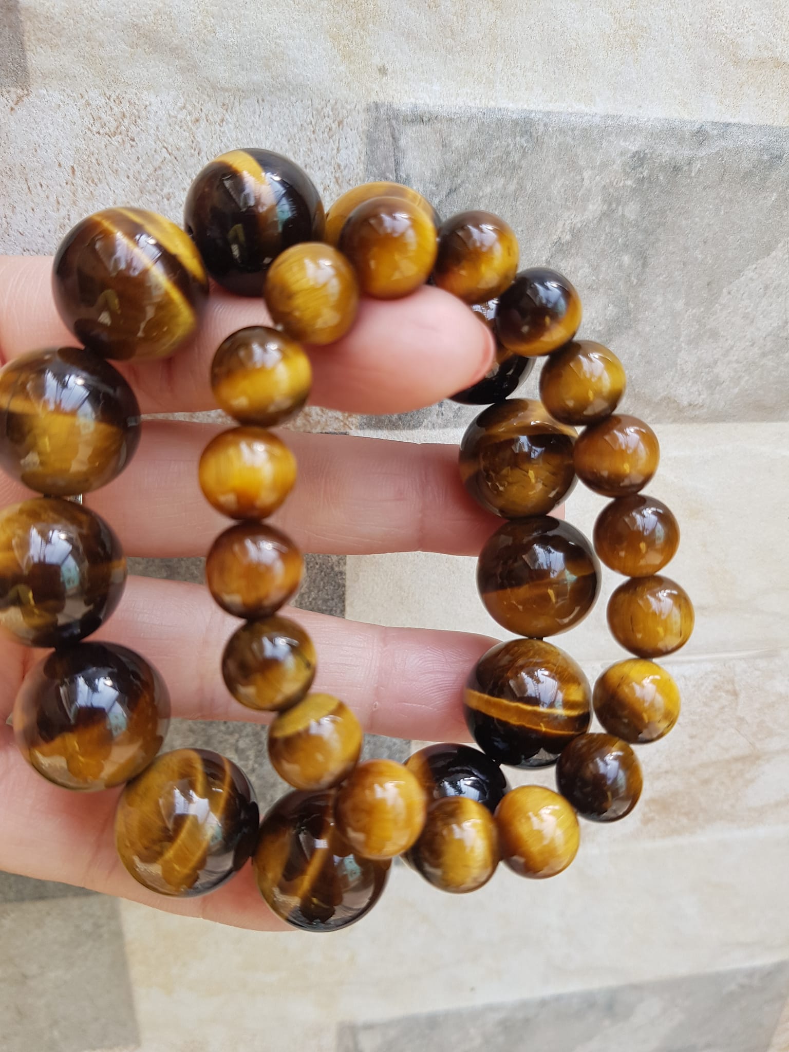 ✨Vòng tay cặp Đá Mắt Hổ Tự Nhiên Vàng Nâu đem lại sự giàu có may mắn Vòng phù hợp với vợ chồng anh chị mệnh Thổ và mệnh Kim ạ Cặp vòng size 10mm và 16mm đeo rất đẹp tốt ạ
