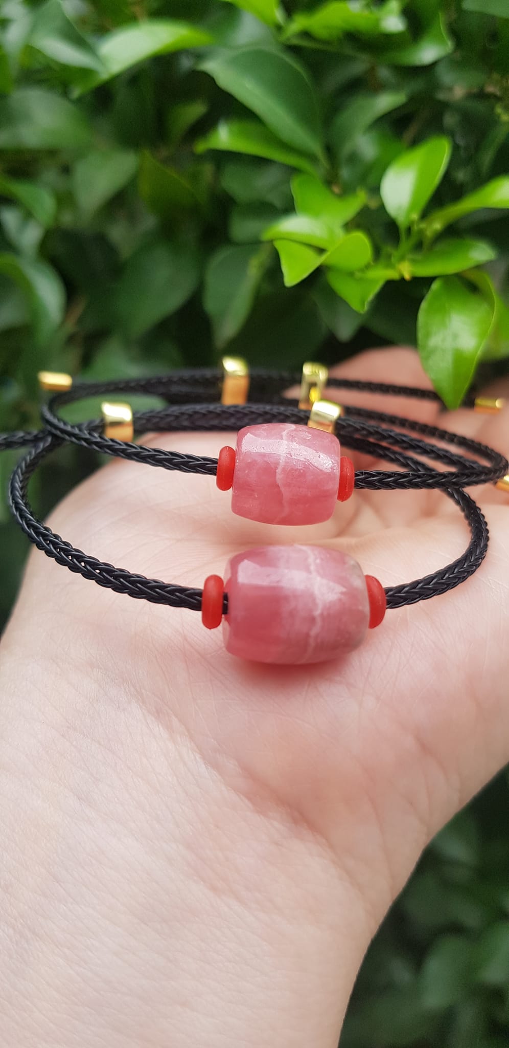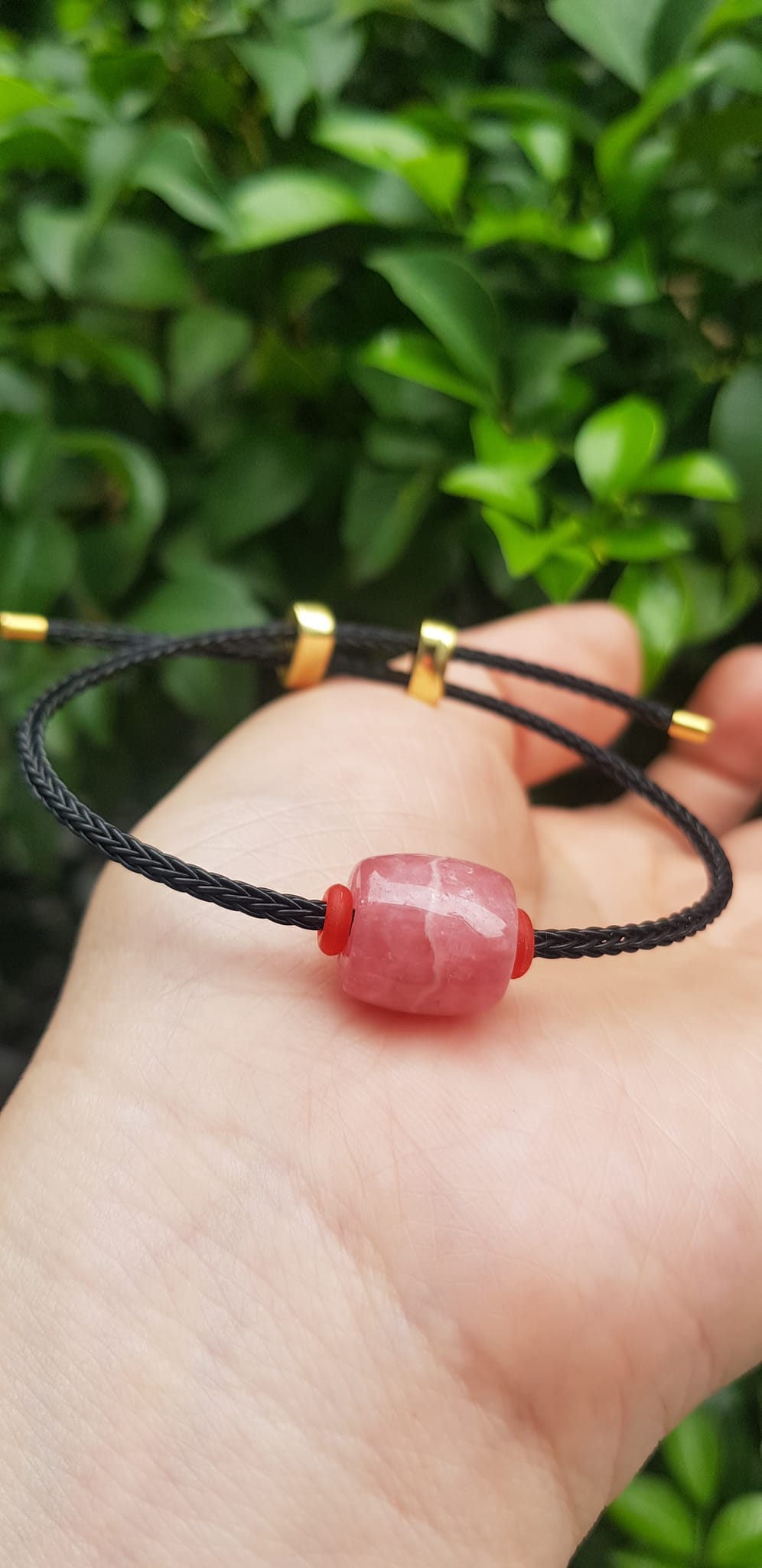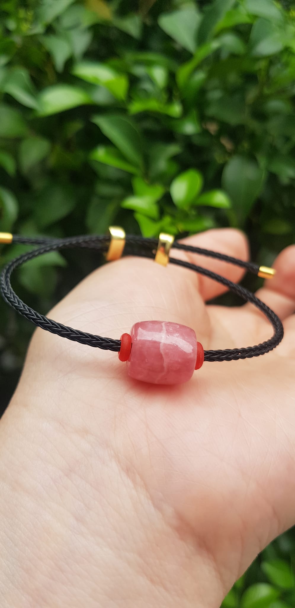 ✨Vòng tay Charm Đá Đào Hoa hồng tươi tự nhiên bóng đẹp phối dây đen may mắn có khoen chỉnh theo tay lớn nhỏ được Nữ mệnh hỏa, mệnh thổ đeo xinh tay may mắn tài lộc tốt công việc ạ