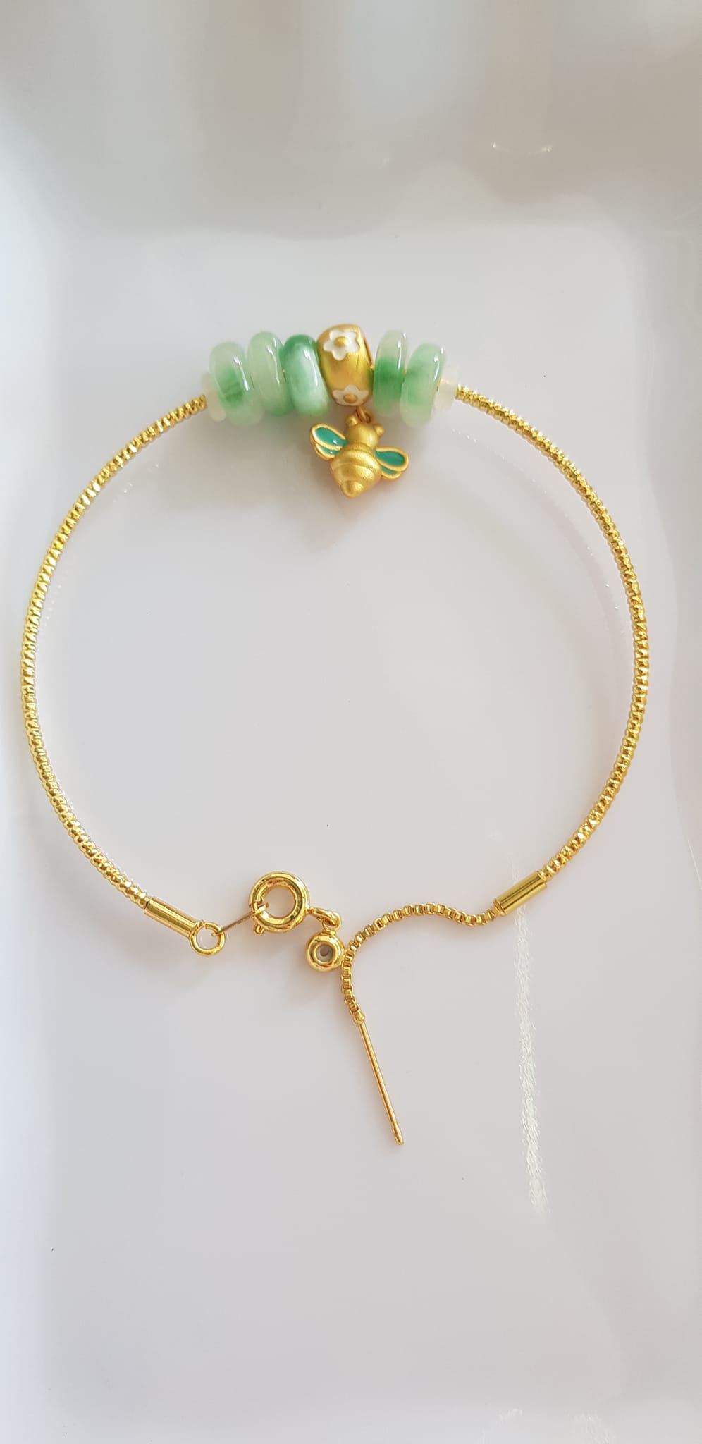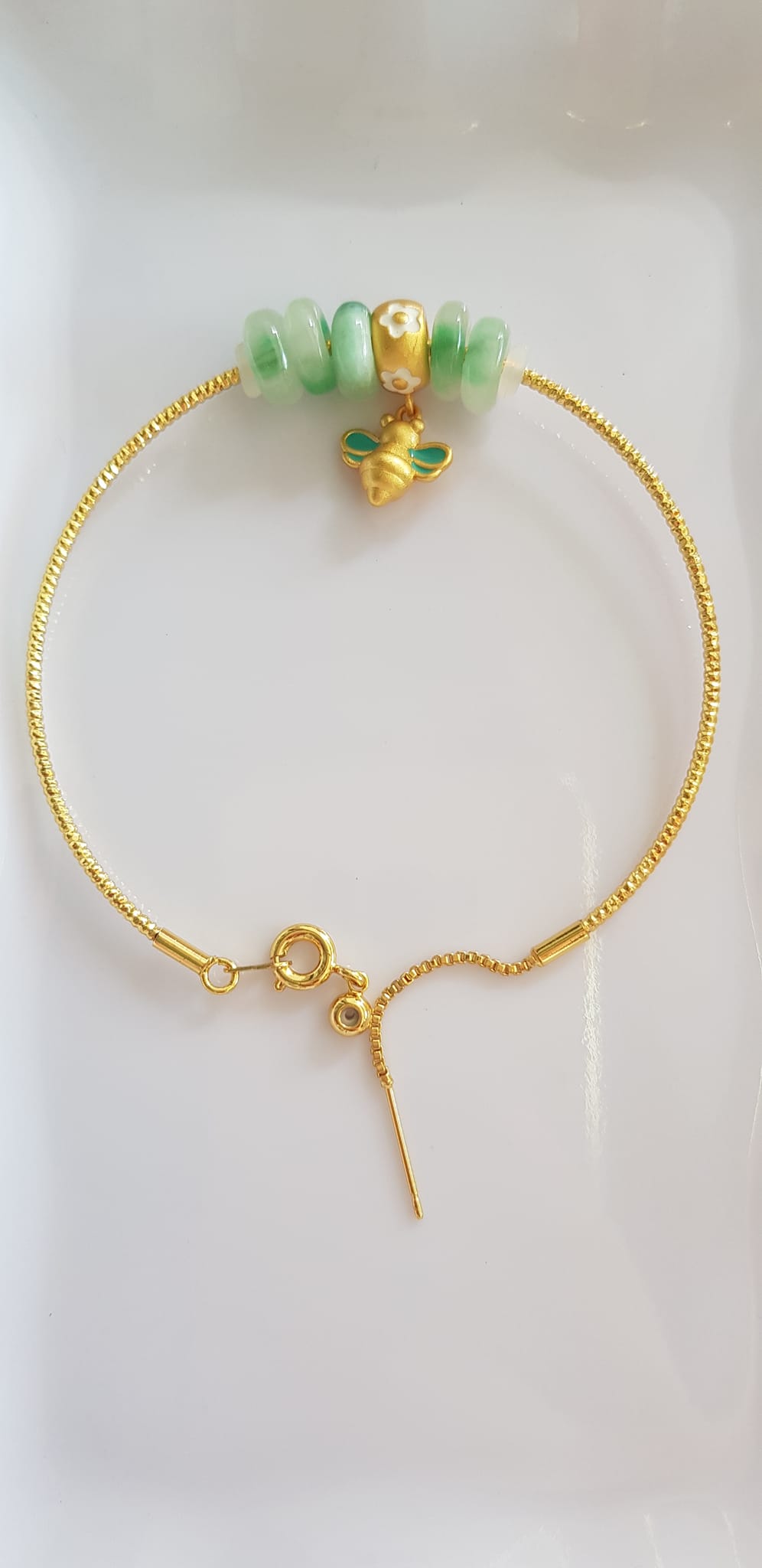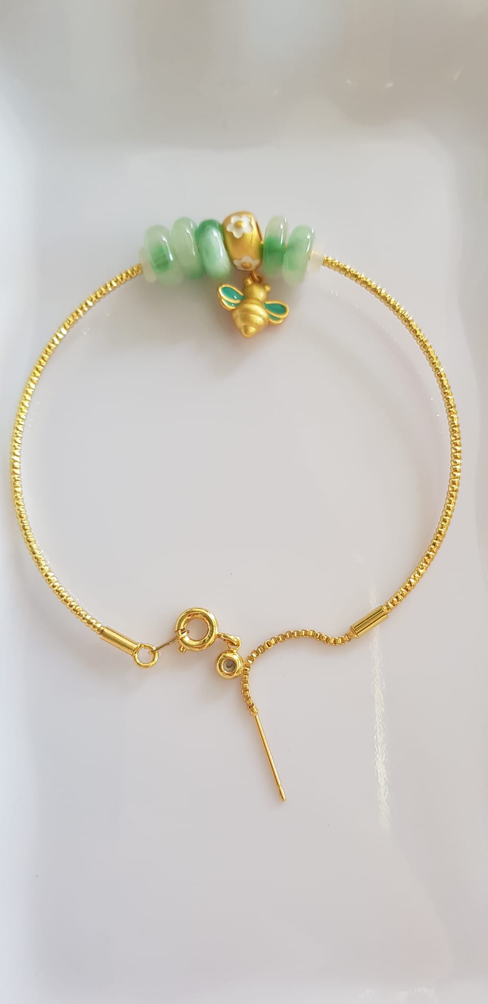 Vòng Tay charm xinh đẹp 5 đồng tiền đá cẩm thạch tự nhiên phối charm hình Chú Ong Xinh /SUNNY QUẬN 8