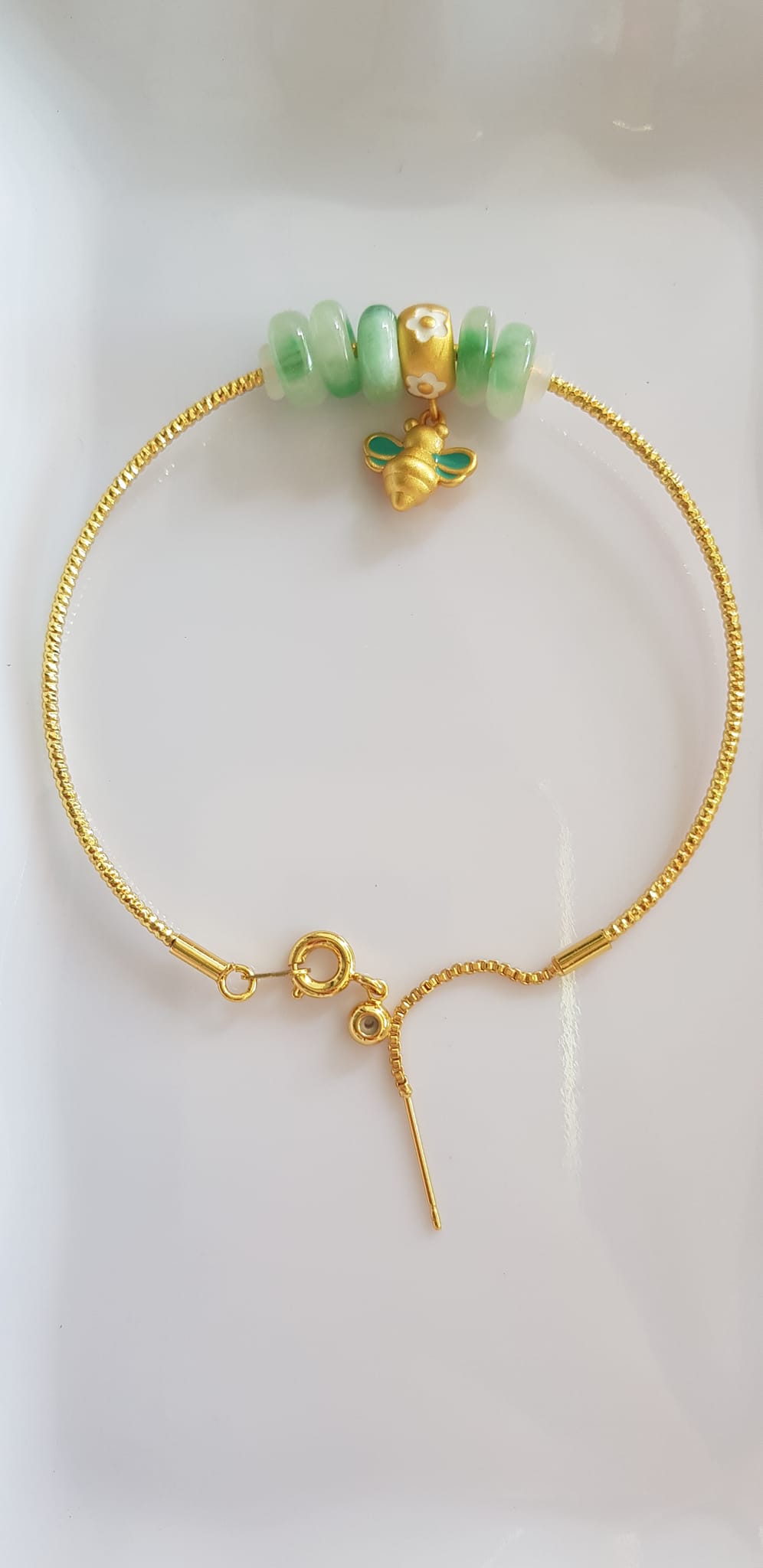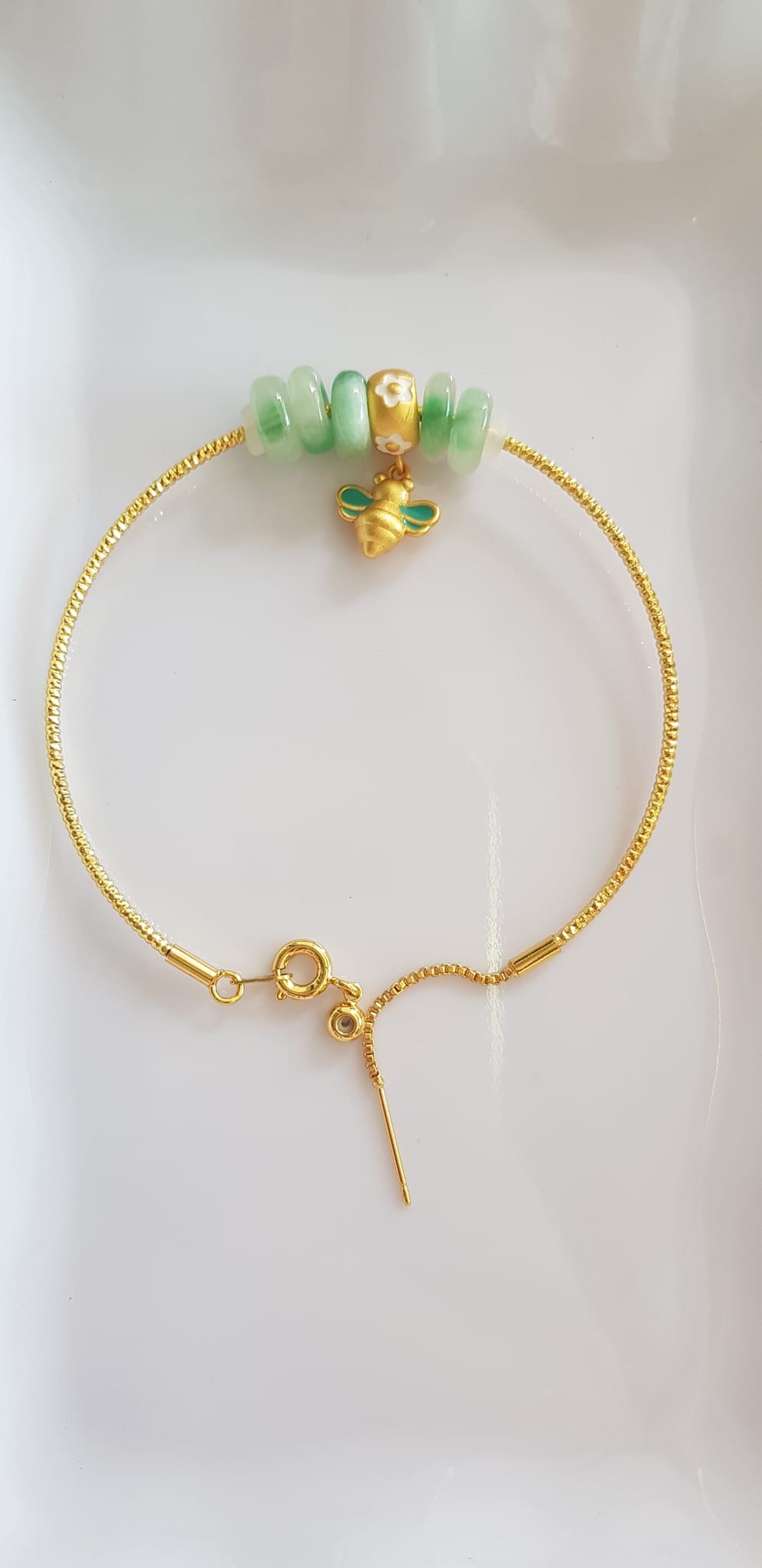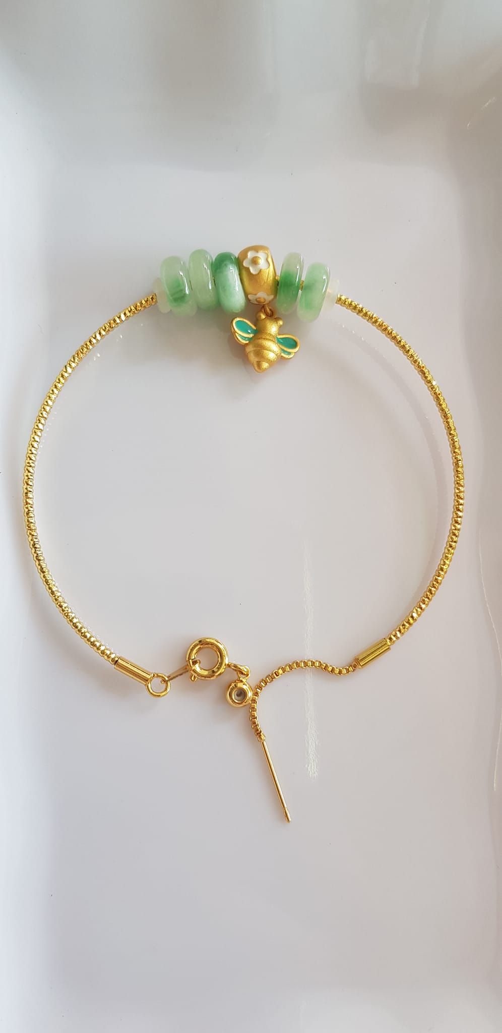 Vòng Tay charm xinh đẹp 5 đồng tiền đá cẩm thạch tự nhiên phối charm hình Chú Ong Xinh /SUNNY QUẬN 8