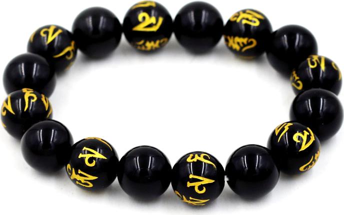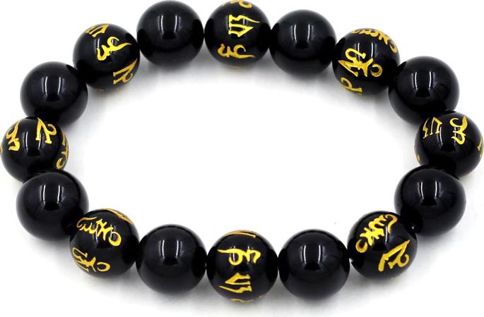 Màu đen , khắc và mạ vàng Phật chú trên hạt chuỗi.