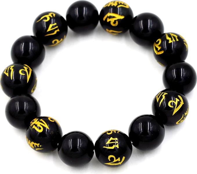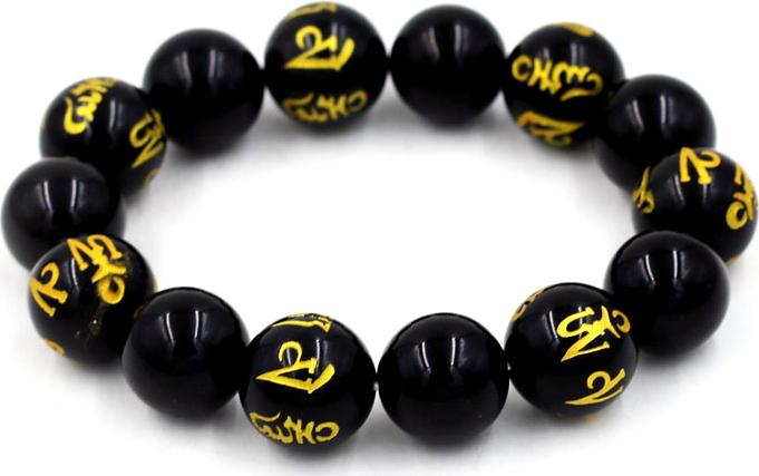 Vòng chuỗi gồm sự kết hợp giữa thạch anh đen mạ-vàng "lục tự kim ngôn" và thạch anh đen, là sản phẩm Phật giáo mang ý nghĩa an khang.