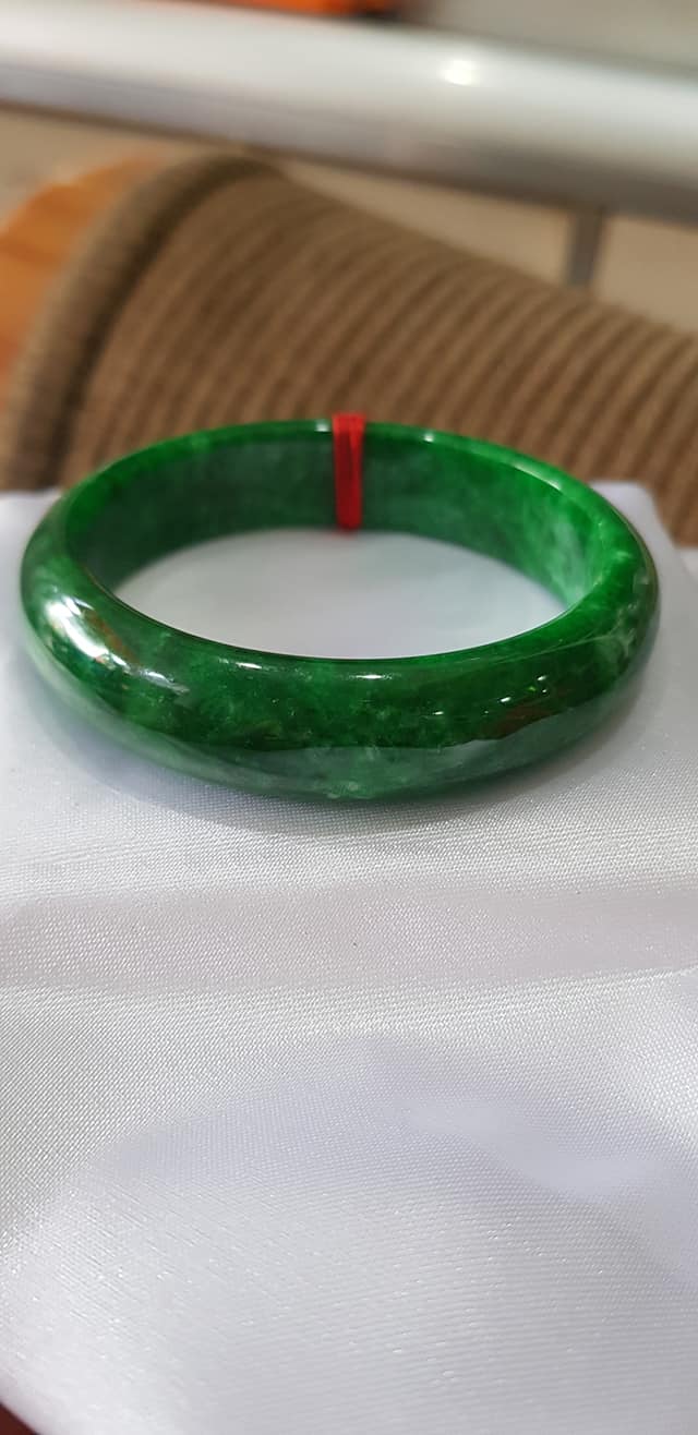 Vòng tay Nữ Đá Cẩm Thạch mới TR Lý 57 mm x cọng 7,5mm Màu Xanh lý tươi trắng 2 bên đều vòng đẹp Nữ 55kg - 64kg đeo đẹp món quà tặng chính mình