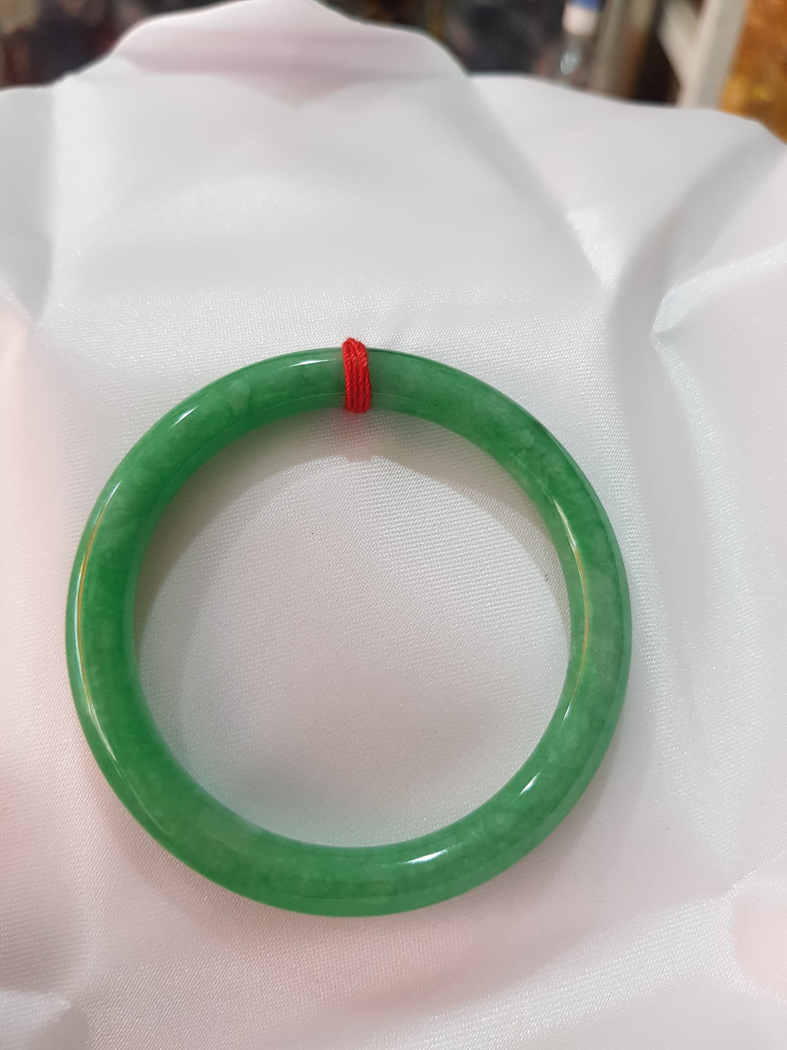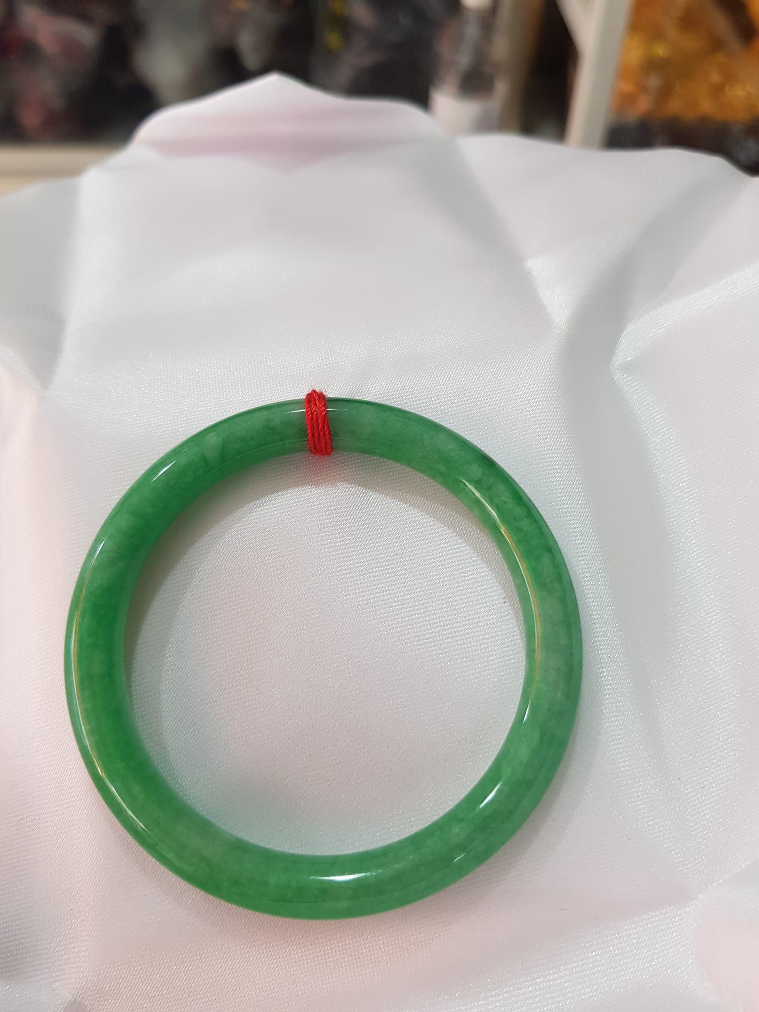 ✨Vòng Tay Đá Cẩm Thạch Đậu 50mm x 7mm đẹp Màu Xanh Ngọc Đậu đều đẹp Hợp mệnh Hỏa Mộc Thủy Nữ cân nặng 50kg - 55kg đeo đẹp ạ