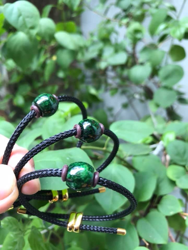 Mua tại TiktokVòng Tay Đá Cẩm thạch lu TRÒN xanh đậm dây đen kiểu xinh xắn bóng đẹp lắm