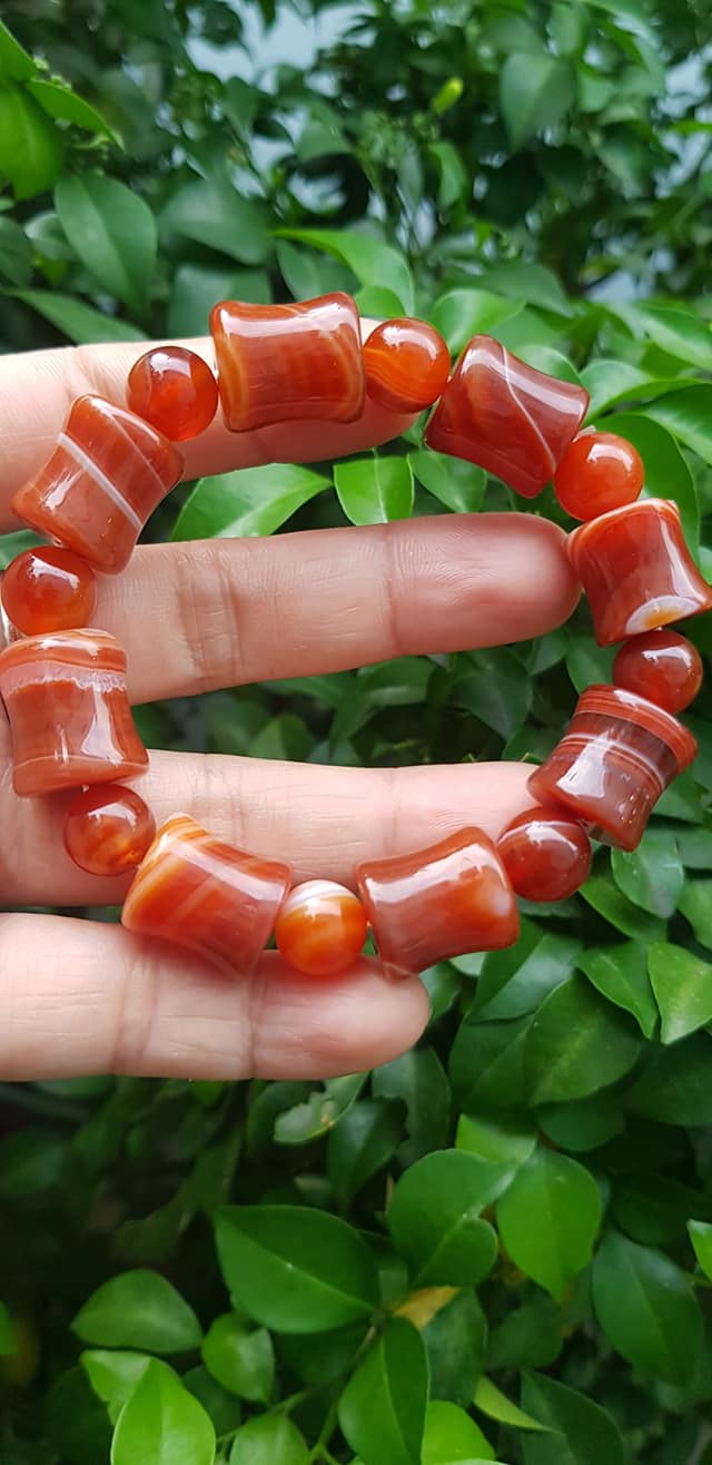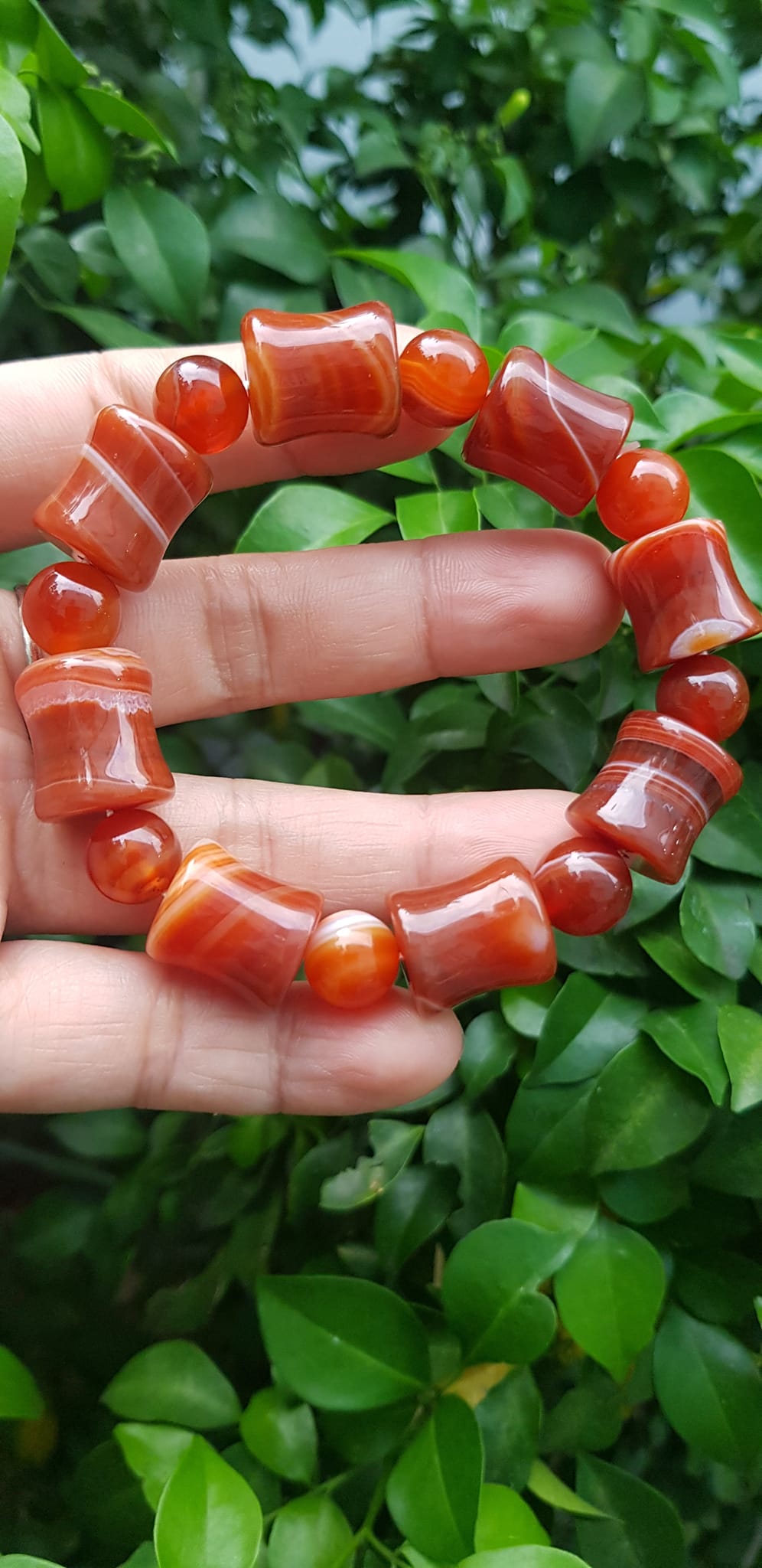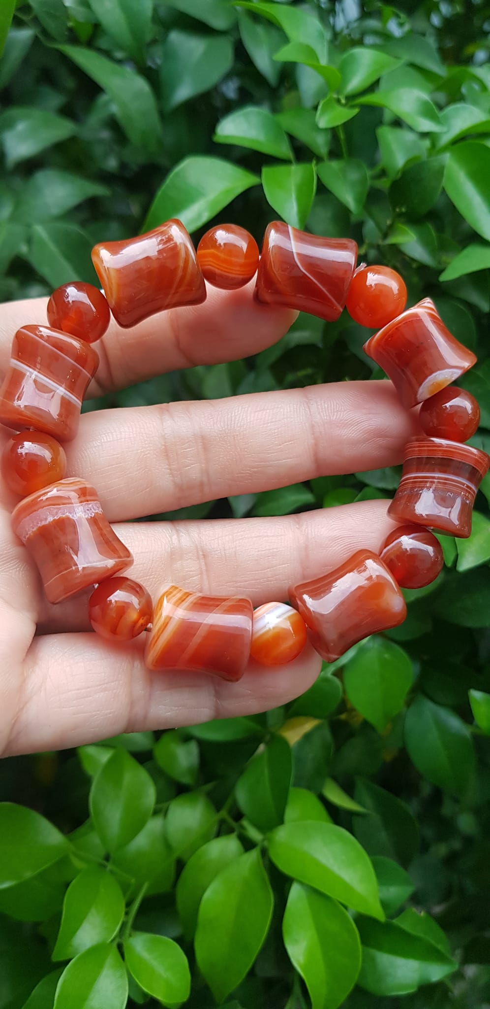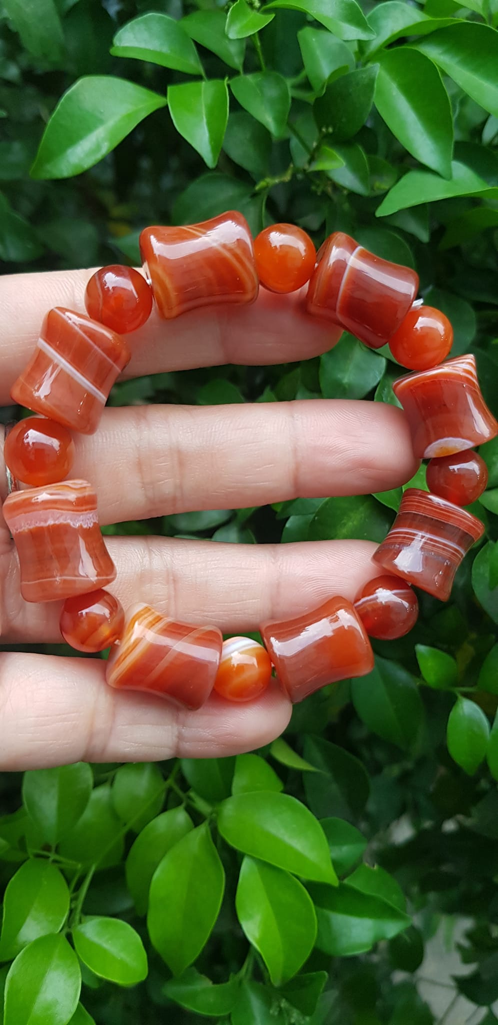 Vòng tay nữ đá mã não đỏ vân đẹp mới Ni 54mm x cọng 8,5mm nữ mệnh hỏa mệnh thổ 52kg - 60kg đeo ạ