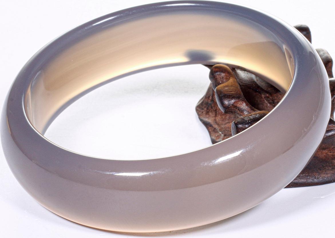 Vòng nguyên khối bản cọng tròn mỏng đá mã não xám - Hợp Mệnh Kim & Thủy [ Ngọc Quý ]