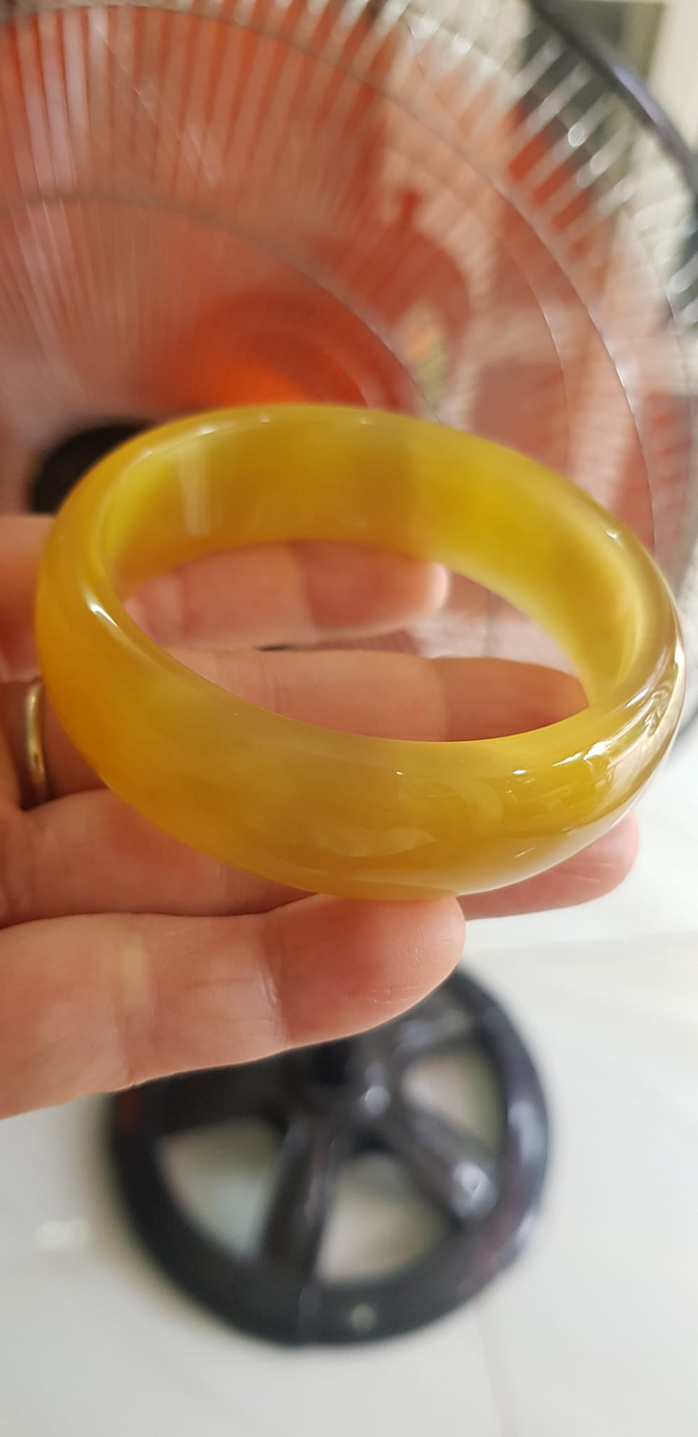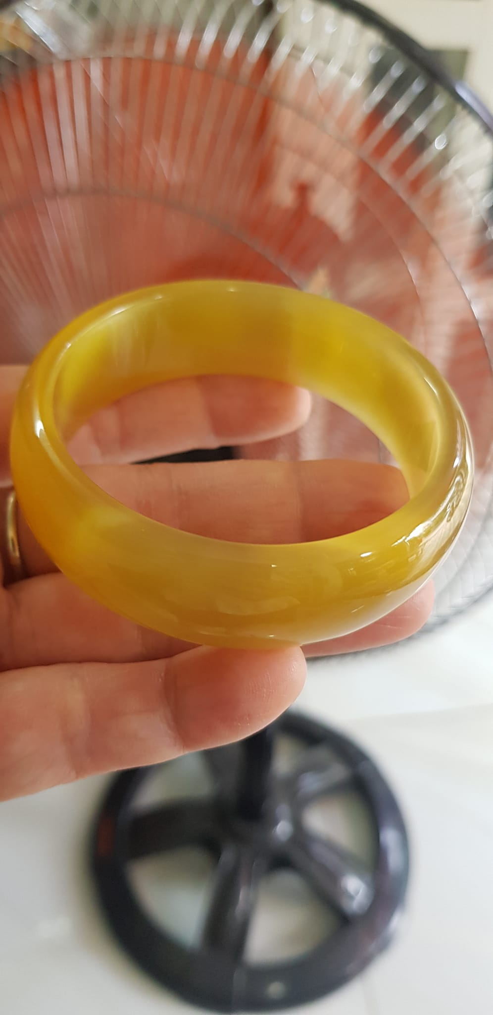 Vòng tay đá mắt mèo Vàng nhẹ Ni 56mm x Cao 19mm dầy 7mm Nữ 52kg - 59kg đeo nhẹ xinh tươi đẹp rẻ lắm