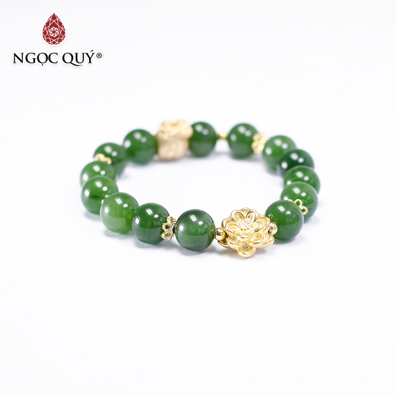 ✨Vòng tay đá ngọc bích phối hoa sen mạ vàng size hạt 10mm mệnh hỏa, thổ - Ngọc Quý Gemstones