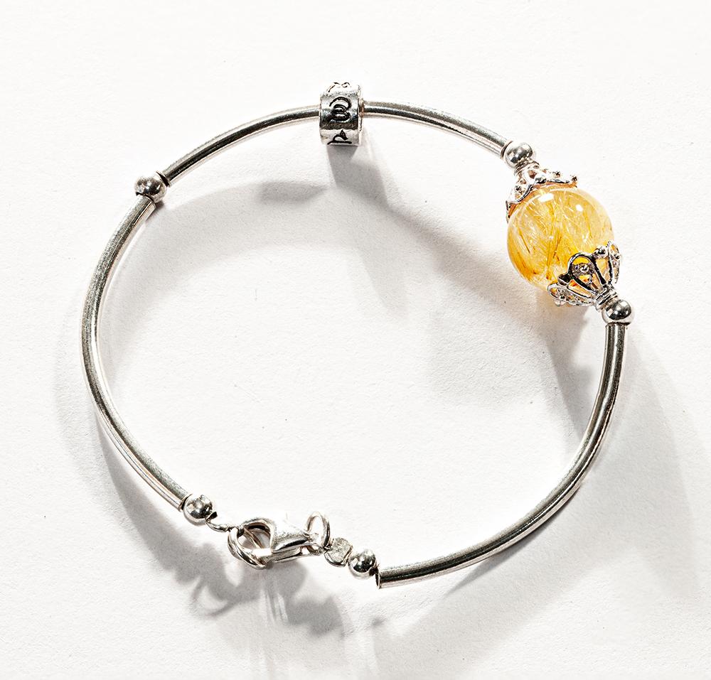 Vòng tay đá thạch anh tóc vàng phối charm bạc - Hợp mệnh kim, thủy | Ngọc Quý Gemstones |