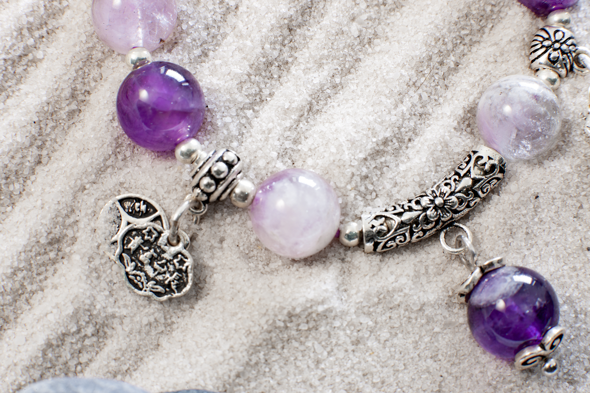 Thạch anh tím rất cần cho người đi xa hay đi ra ngoài, ngủ nơi lạ; làm tỉnh thức, hỗ trợ thiền định, giúp cân bằng năng lượng và mang lại bình yên nội tại. Thạch anh tím cũng mang lại niềm vui và bình yên cho xung quanh.