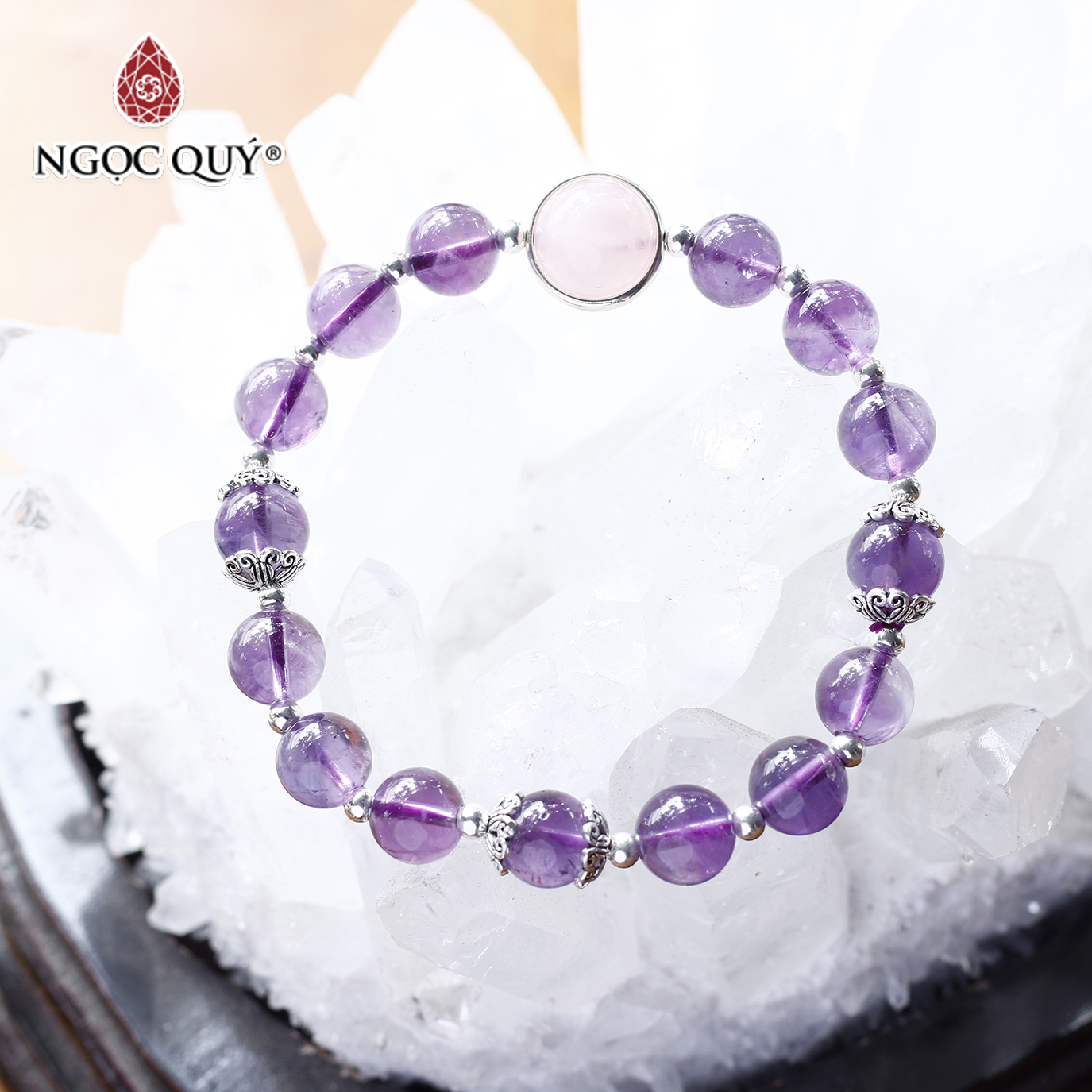 - Vòng Đá Thạch Anh Ưu Linh Trắng Phối Charm Bạc (8mm) Ngọc Quý Gemstones được mệnh danh là anh cả và là một biến thể cực kì độc đáo trong dòng đá thạch anh.