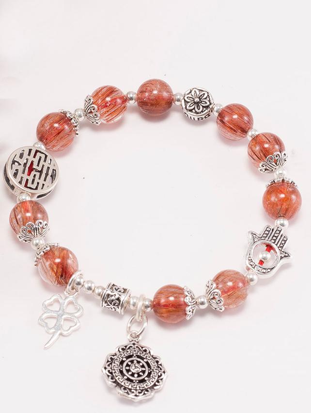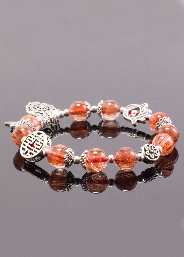 - Vòng Tay Đá Thạch Anh Tóc Đỏ Đồng Trục Phối Charm Bạc (8mm) sẽ giúp những bạn nữ có thể chất yếu và khí huyết không ổn định bổ sung năng lượng cho 3 vùng dưới (mông, rốn, thái dương) giúp cho khí huyết lưu thông điều hòa hơn.