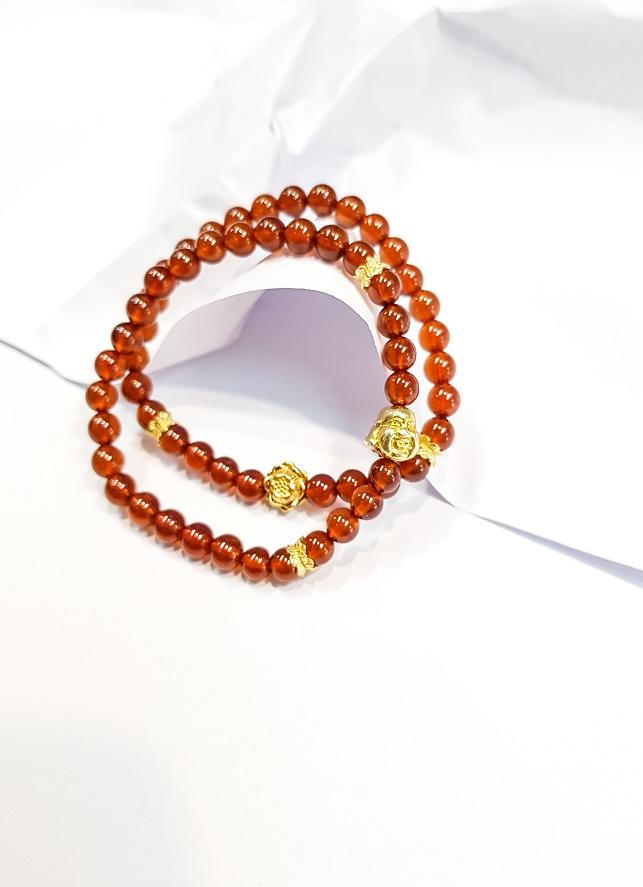 Vòng tay phong thủy Mã Não đỏ 6mm + 3 lu ngọc by ANQLO được chế tác 100% từ đá mã não tự nhiên, Đá mã não có tác dụng giảm căng thẳng, lo lắng,