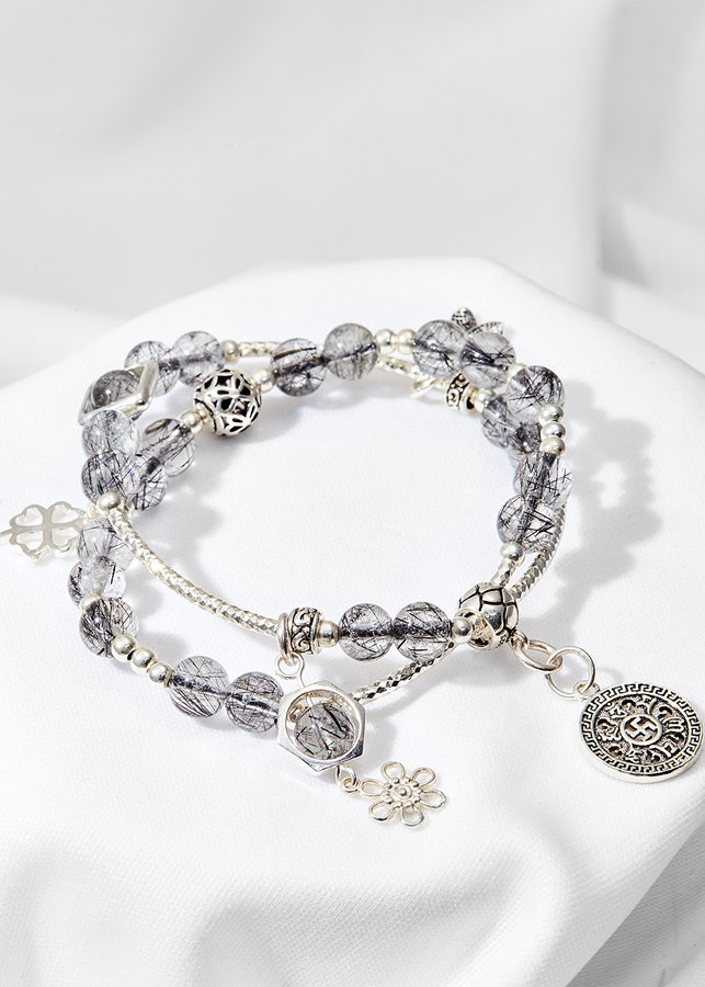 - Vòng Tay Laliz Mệnh Thổ, Kim Đá Thạch Anh Tóc Nâu Mix Thạch Anh Ưu Linh Charm Bạc - TAR.12 được làm từ loài đá tự nhiên kết hợp Bạc 925, không chỉ là