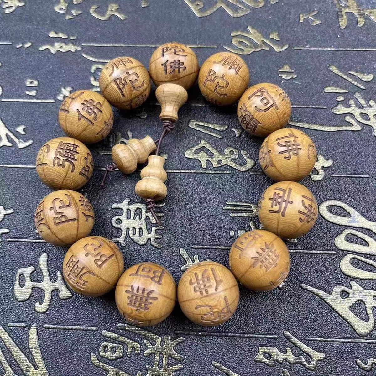✨VÒNG TAY GỖ LỤC ĐẠO MỘC LIÊN HOA KHẮC NAM MÔ A DI ĐÀ PHẬT 13 hạt 18ly TẶNG HỘP ĐỰNG