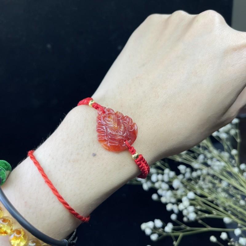 Vòng Tay Hồ Ly Chúa Ngoc Huyết Đỏ kết dây chỉ đỏ may mắn