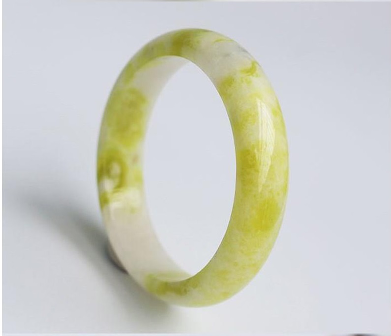 Vòng tay Nữ Đá Cẩm Thạch mới TR Lý 57 mm x cọng 7,5mm Màu Xanh lý tươi trắng 2 bên đều vòng đẹp Nữ 55kg - 64kg đeo đẹp món quà tặng chính mình