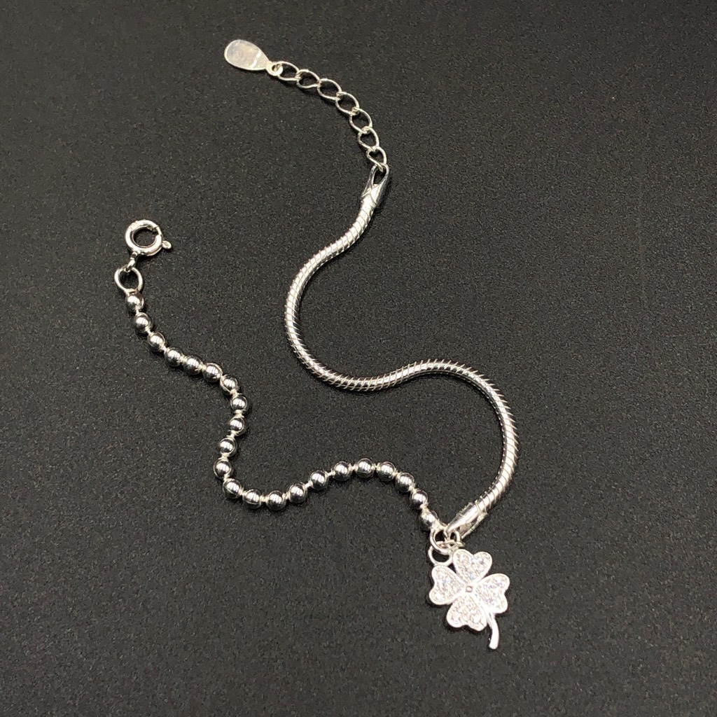 ✨Vòng Tay Lắc Tay Nữ Bạc Ta Dây Mì Bi Cỏ 4 Lá May Mắn Bạc Hiểu Minh LTU575
