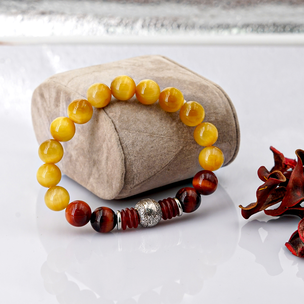 Vòng tay phong thủy Mắt hổ vàng tâm 8mm + Khoen mã não by Anqlo là sản phẩm được chế tác tinh xảo, có độ hoàn thiện cao bởi các nghệ nhân lâu năm trong