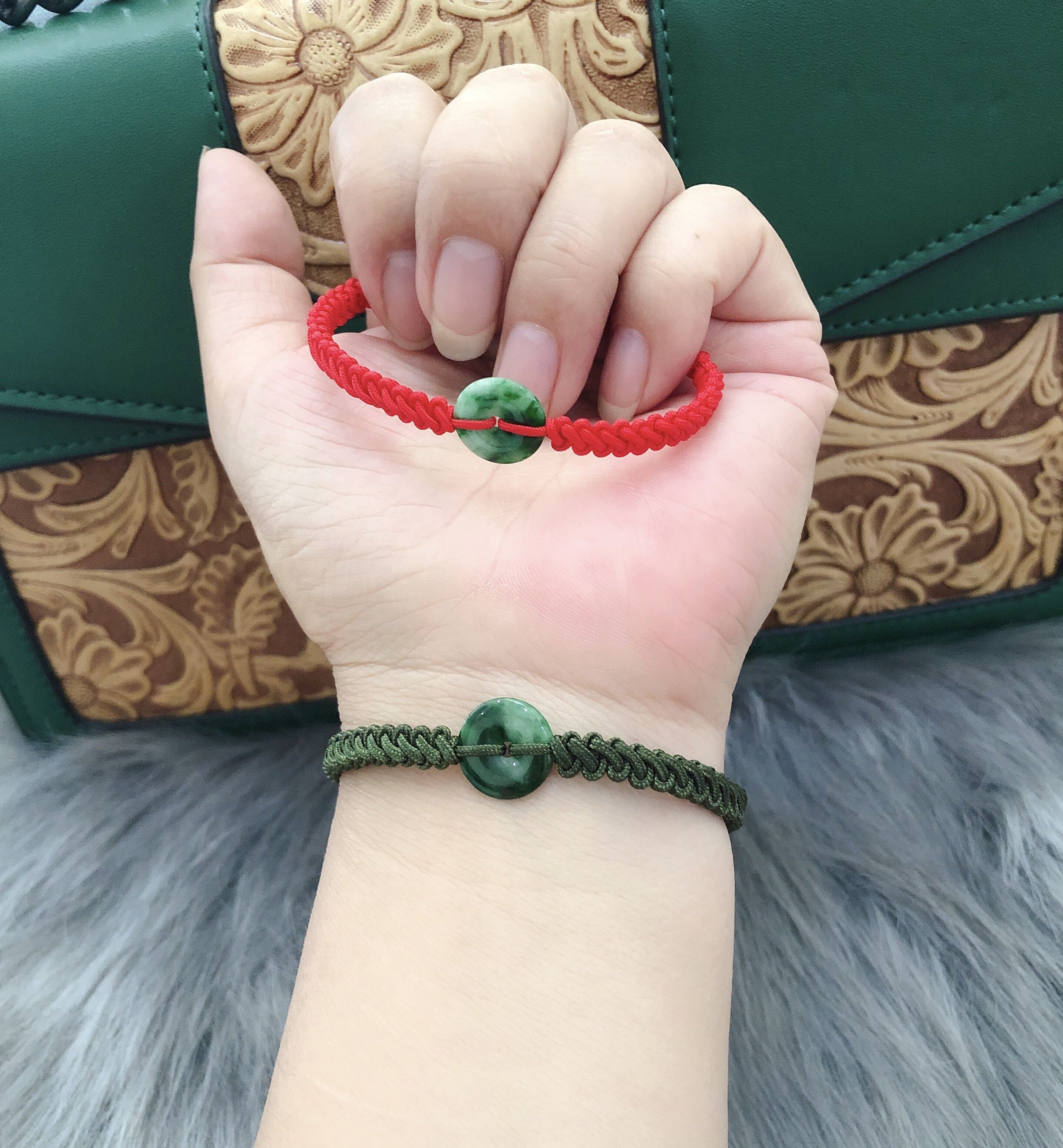 Vòng Tay Dây Đỏ Đồng Tiền Điếu Đá Cẩm Thạch Trắng Xanh Nhẹ Bóng Đẹp Nữ đeo tay may mắn xinh tài lộc