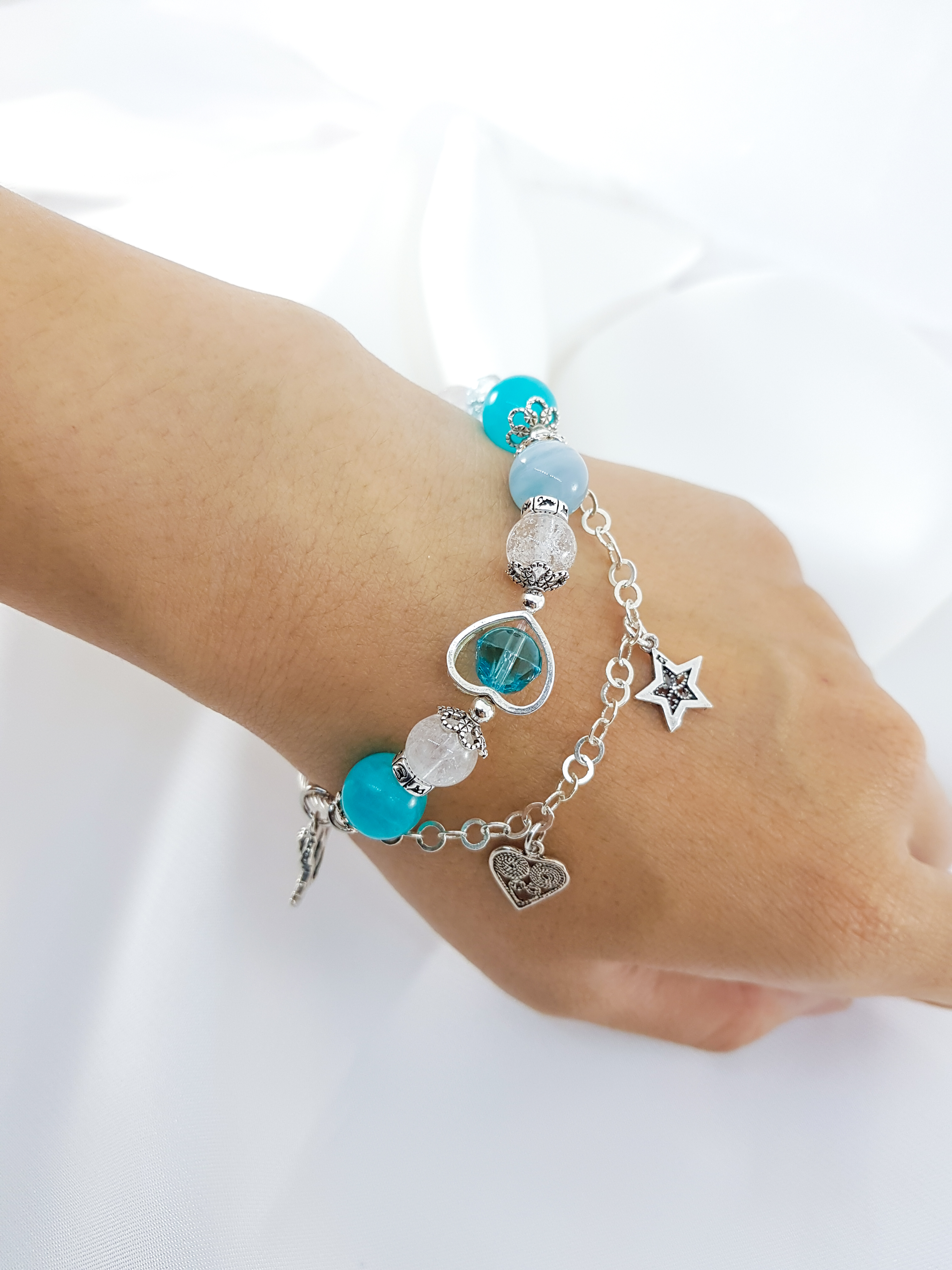 VÒNG TAY ĐÁ CHALCEDONY : Chalcedony sở hữu hoa văn và màu sắc đặc biệt cùng hiện tượng tán sắc vô cùng thú vị, rất ít xuất hiện ở những loại đá khác. Vòng tay Đá Chalcedony charm cây bạc mang đến điềm lành, giúp nuôi dưỡng và ổn định tinh thần lẫn tình cảm ở chủ nhân, là món quà mà bất kì ai cũng mong muốn sở hữu. CÔNG DỤNG VÀ Ý NGHĨA CỦA ĐÁ CHALCEDONY: - Về mặt phong thủy - Chalcedony là viên đá của niềm vui, sự hân hoan và đức tính trung thực ở con người. - Kích thích sự hưng phấn, cảm giác lạc quan, yêu đời ở người đeo, dẫn lối cho họ đến thành công. - Lan tỏa nguồn năng lượng tích cực, giúp chủ nhân thu hút nhiều may mắn và tiền bạc trong cuộc sống. - Về mặt sức khỏe - Chalcedony giúp cân bằng và ổn định cảm xúc, được ứng dụng để phòng chứng trầm cảm, rối loạn tiến đình và một số vấn đề liên quan đến thần kinh khác. - Đeo đá thường xuyên sẽ giúp bạn có giấc ngủ ngon và tràn đầy năng lượng cho một ngày mới. - Hợp mệnh - Chalcedony Xanh phù hợp với người mệnh Mộc (theo tương hợp) và mệnh Hỏa (theo tương sinh). CÁCH BẢO QUẢN SẢN PHẨM: 1. Tránh để vòng tiếp xúc với các hóa chất. Khi mang nên tránh để vòng tay tiếp xúc với hóa chất tẩy rửa mạnh: javen, chất tẩy trắng, axit 2. Tránh va đập mạnh. Là sản phẩm được làm từ đá tự nhiên có độ cứng định, nhưng cũng sẽ vỡ, trầy xước khi va đập mạnh, nên tránh các trường hợp sau: - Không mang vòng khi chơi thể thao và các hoạt động mạnh khác. - Tránh va đập vòng, làm rớt vòng. - Tránh ma sát vòng với các bề mặt sắc cạnh như dao kéo hoặc bề mặt dễ gây trầy xước như xi măng, nền đá nhám, đá sỏi 3. Sử dụng và cất giữ vòng đúng cách. - Có thể tháo vòng khi đi tắm và khi đi ngủ.