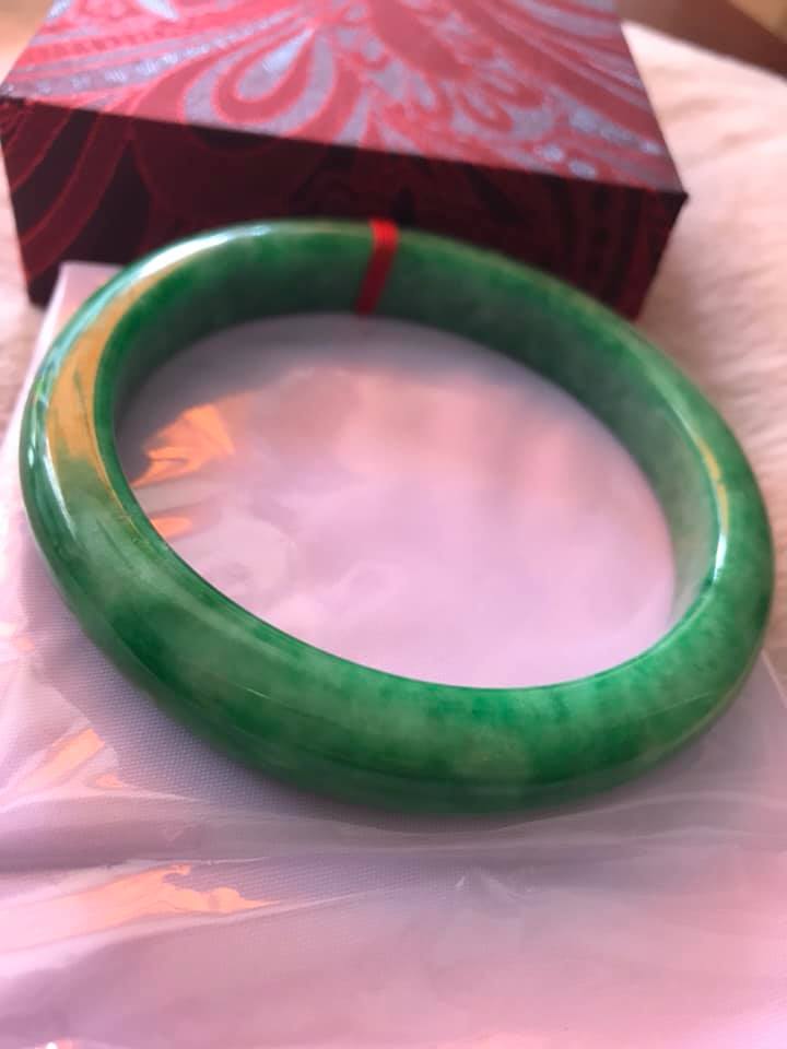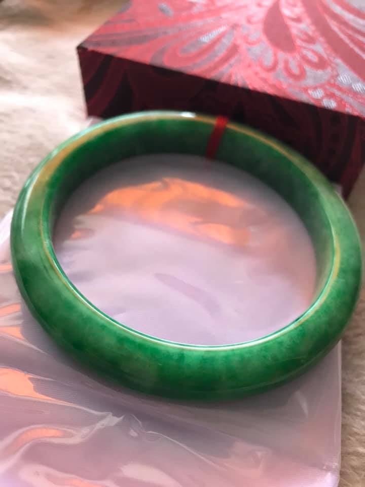 💌Vòng Tay nữ Cẩm Thạch Lý Nở 53mm x Dầy 7,2mm Màu Xanh lá Tươi bóng đều đẹp hợp Nữ mệnh Mộc Hỏa ạ