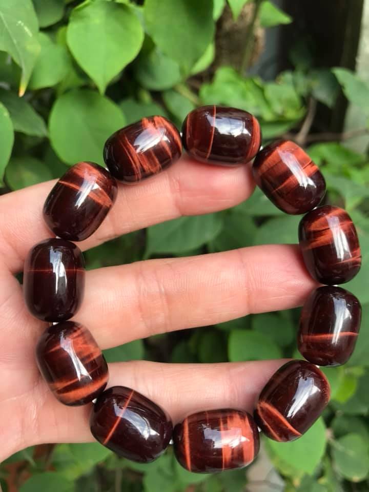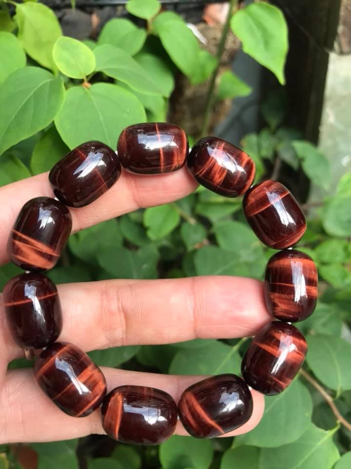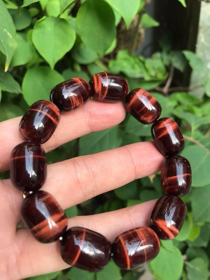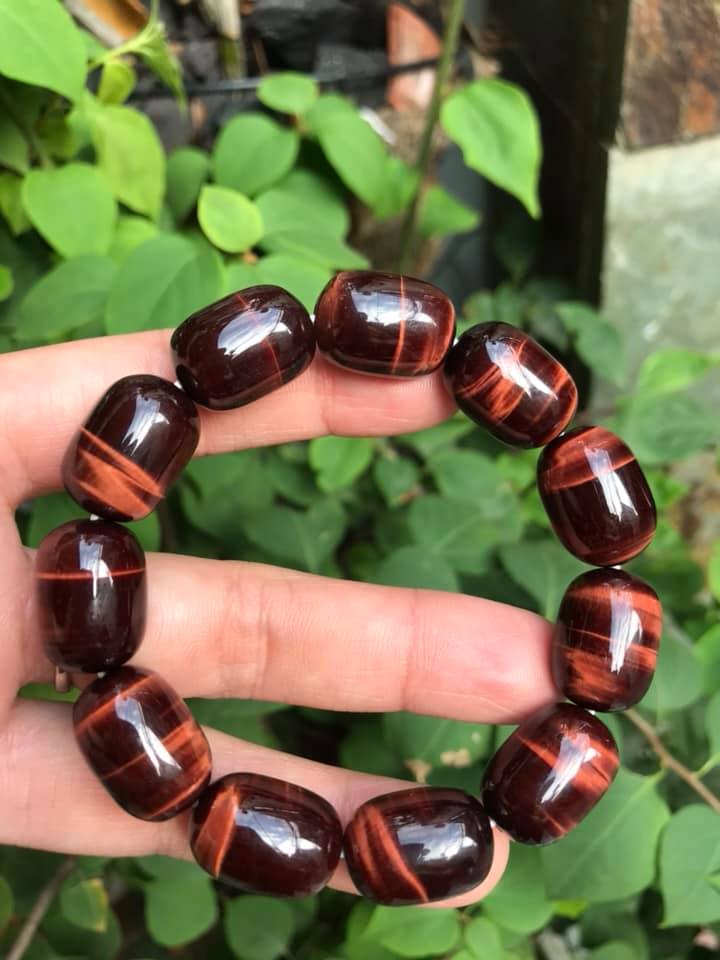 Vòng tay Nam Thạch Anh Mắt Hổ Đỏ Nâu Lu Bóng Đẹp hạt 13mm Dài 18mm mệnh Hoả Thổ 100% thiên nhiên ạ