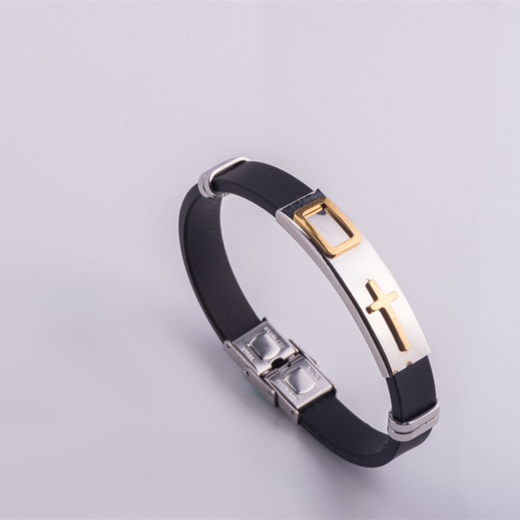 Vòng Tay Nam Dây Cao Su Và Thép Titan Không Rỉ Ko Dị Ứng TT 1045