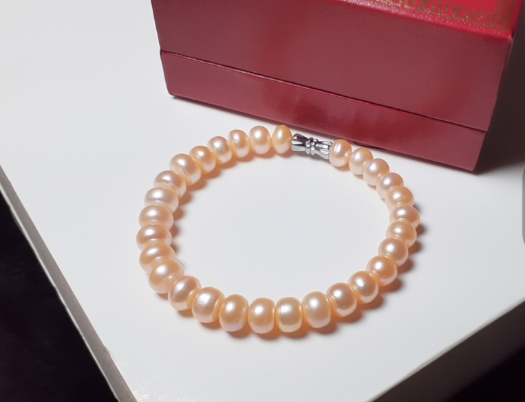 - Vòng tay gồm những hạt ngọc 8mm, đây là kích thước phù hợp cho hầu hết mọi dáng tay.