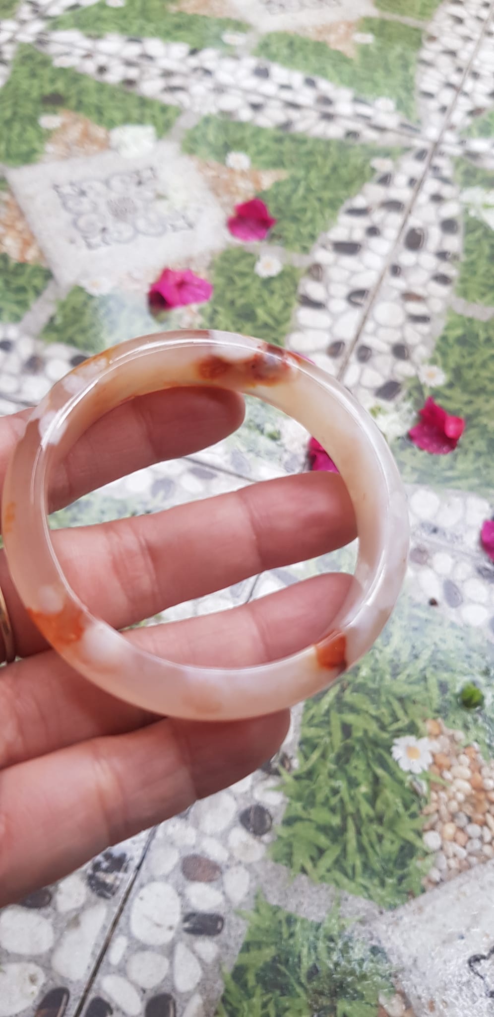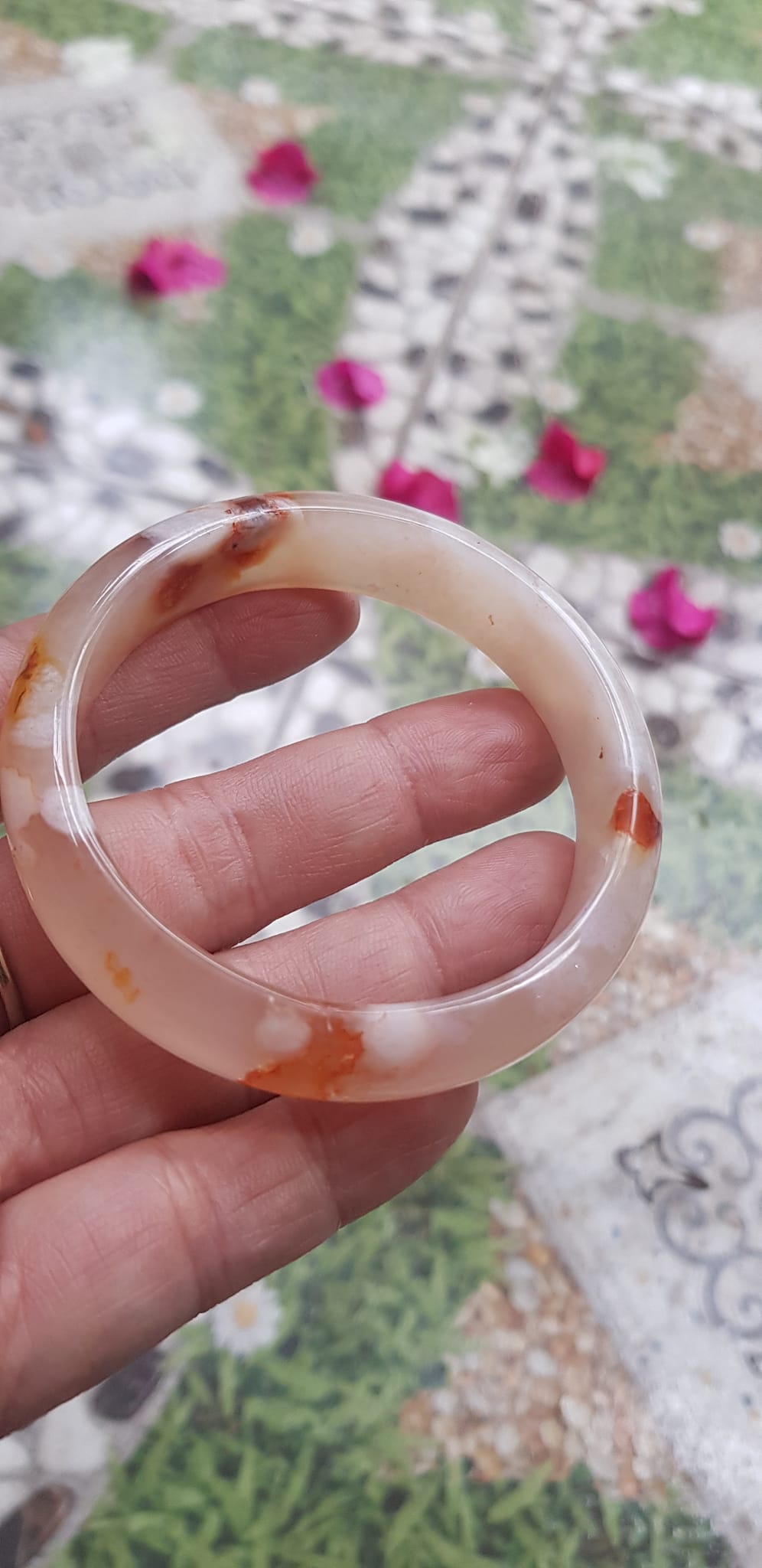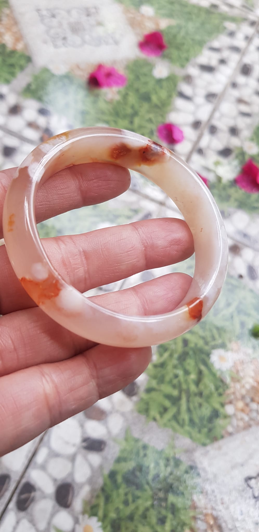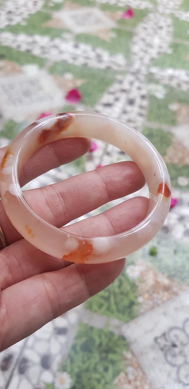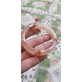 Vòng tay Nữ Bản Hẹ Mới Đá Mã Não Bông Tuyết Hồng nhẹ trắng trong bóng quá đẹp luôn ạ Ni 53mm x Cao 11mm x dầy 7mm Nữ Cân nặng 52kg - 55kg đeo