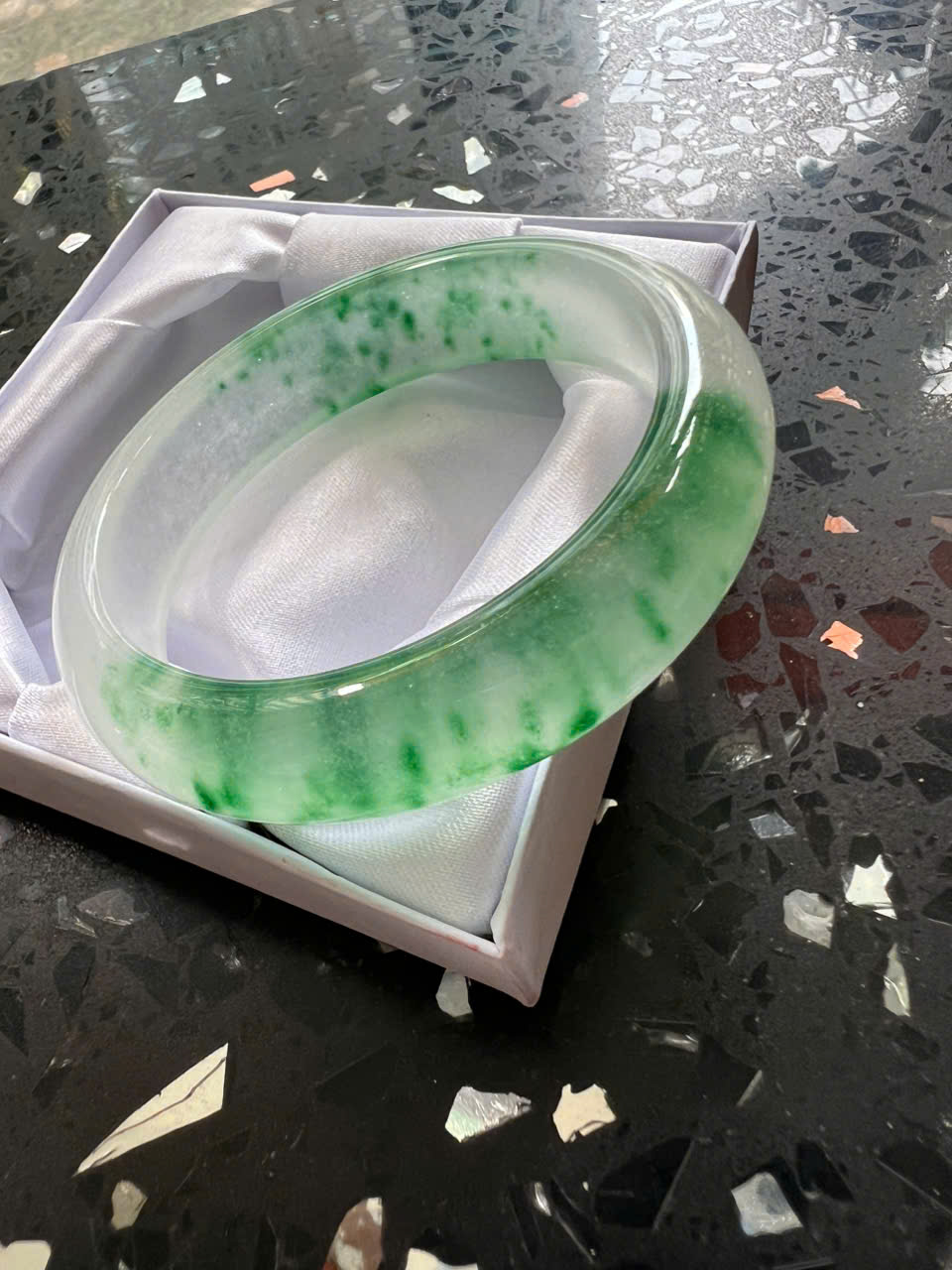 Vòng tay Nữ Đá Cẩm Thạch mới TR Lý 57 mm x cọng 7,5mm Màu Xanh lý tươi trắng 2 bên đều vòng đẹp Nữ 55kg - 64kg đeo đẹp món quà tặng chính mình