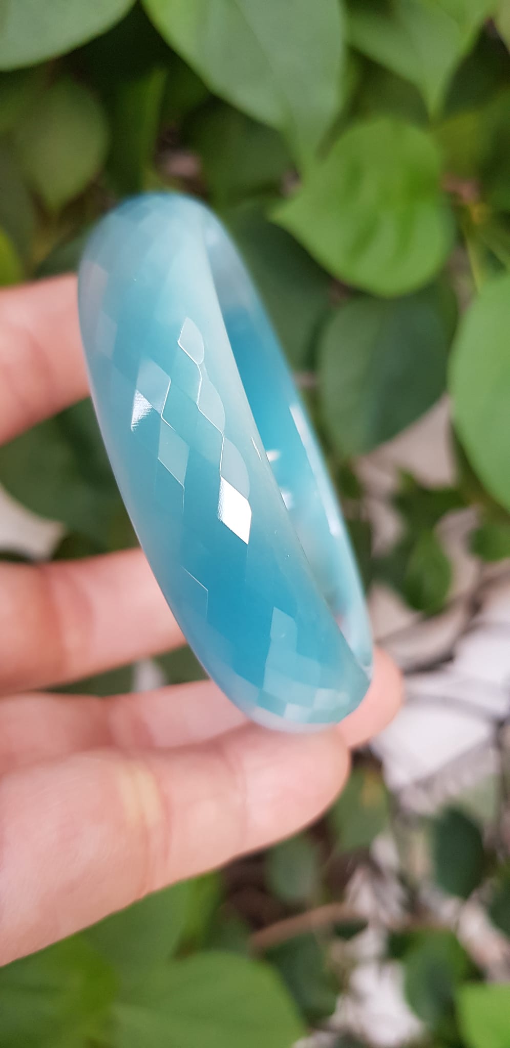 Vòng tay nữ đá mắt mèo Xanh dương nhẹ bản hẹ mới Ni 53mm x cao 12mm x dầy 6,5mm nữ 49kg - 54kg đeo