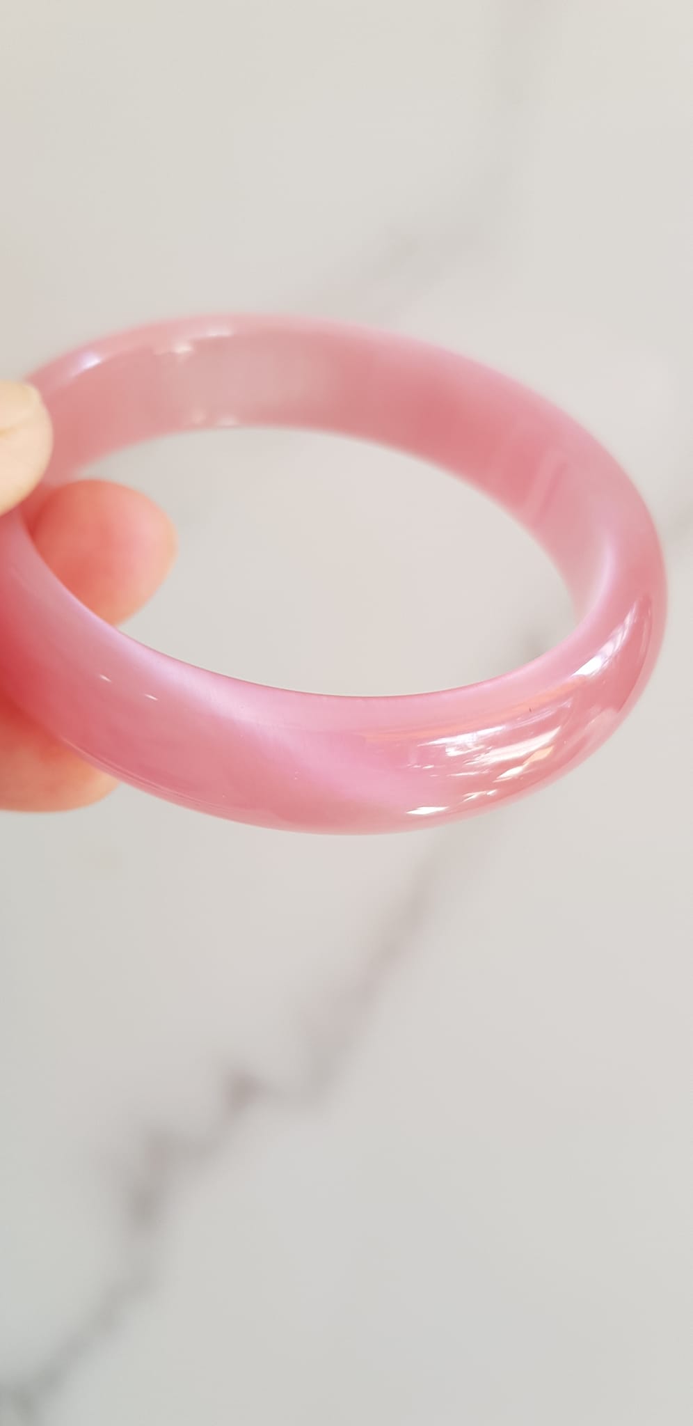 Vòng tay nữ đá mắt mèo hồng bản hẹ mới Ni 53mm x cao 13mm x dầy 7mm Nữ 50kg - 57kg đeo Vòng màu hồng hồng nhẹ xinh tươi đẹp rẻ lắm chuẩn hợp nữ mệnh hỏa mệnh thổ ạ