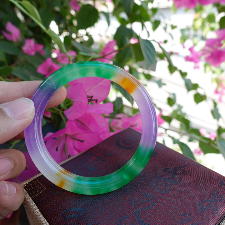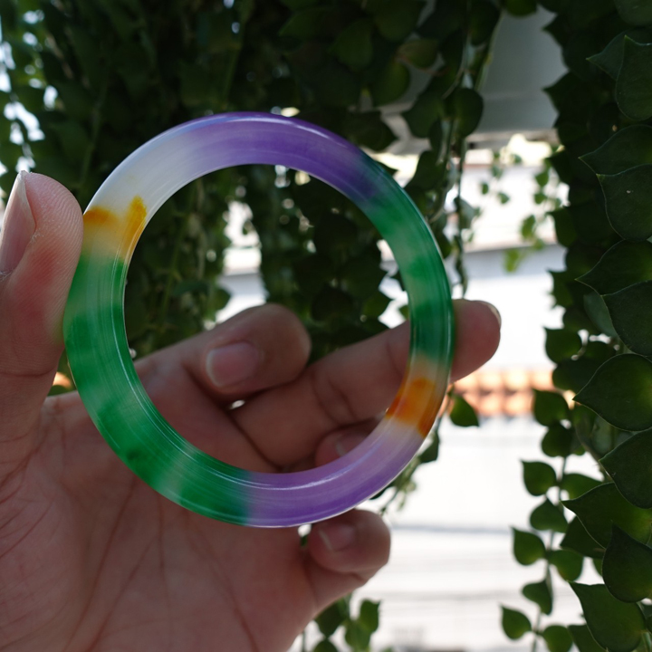 Vòng tay Nữ Đá Cẩm Thạch mới TR Lý 57 mm x cọng 7,5mm Màu Xanh lý tươi trắng 2 bên đều vòng đẹp Nữ 55kg - 64kg đeo đẹp món quà tặng chính mình