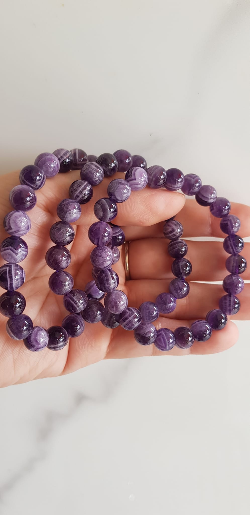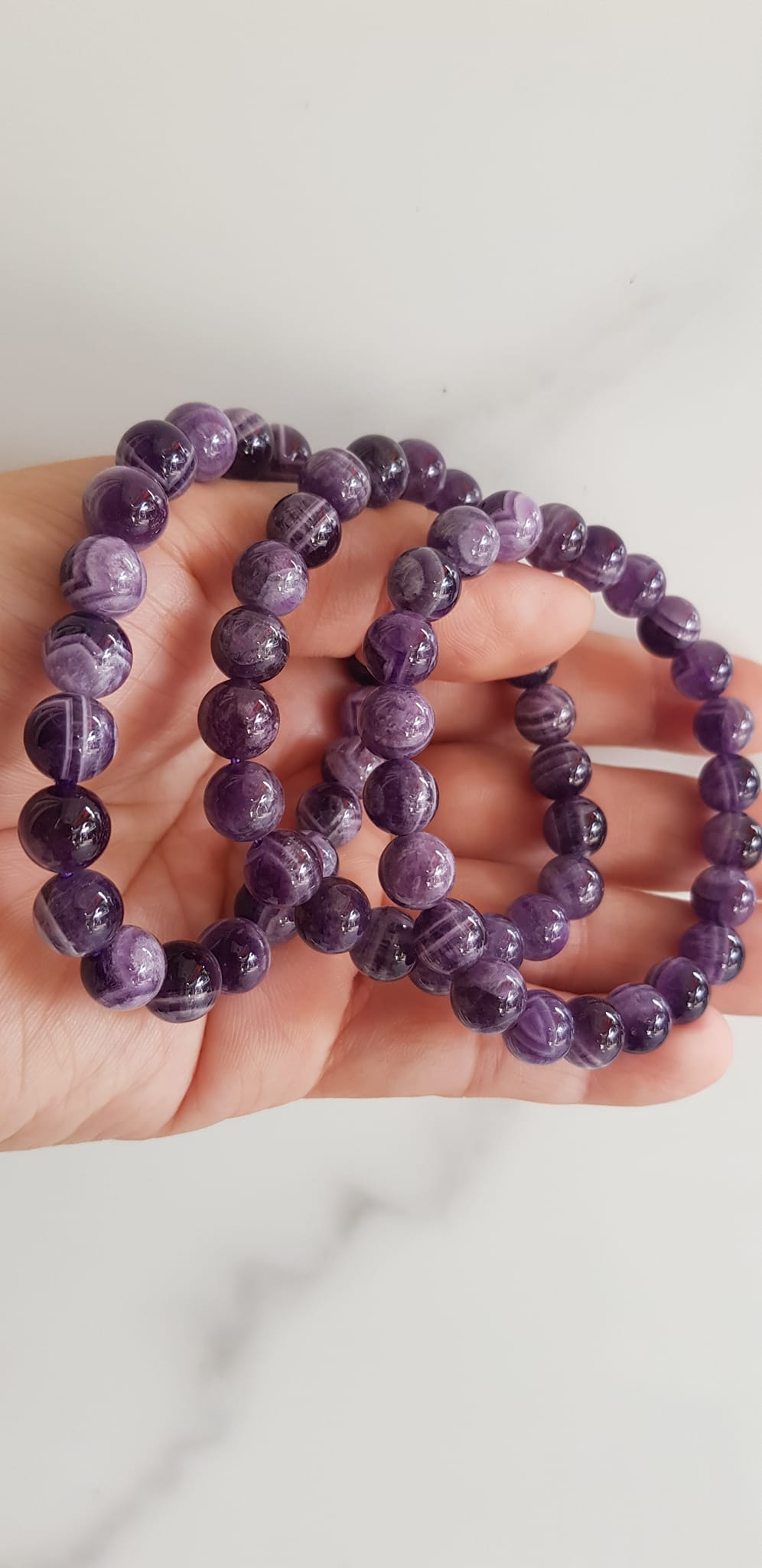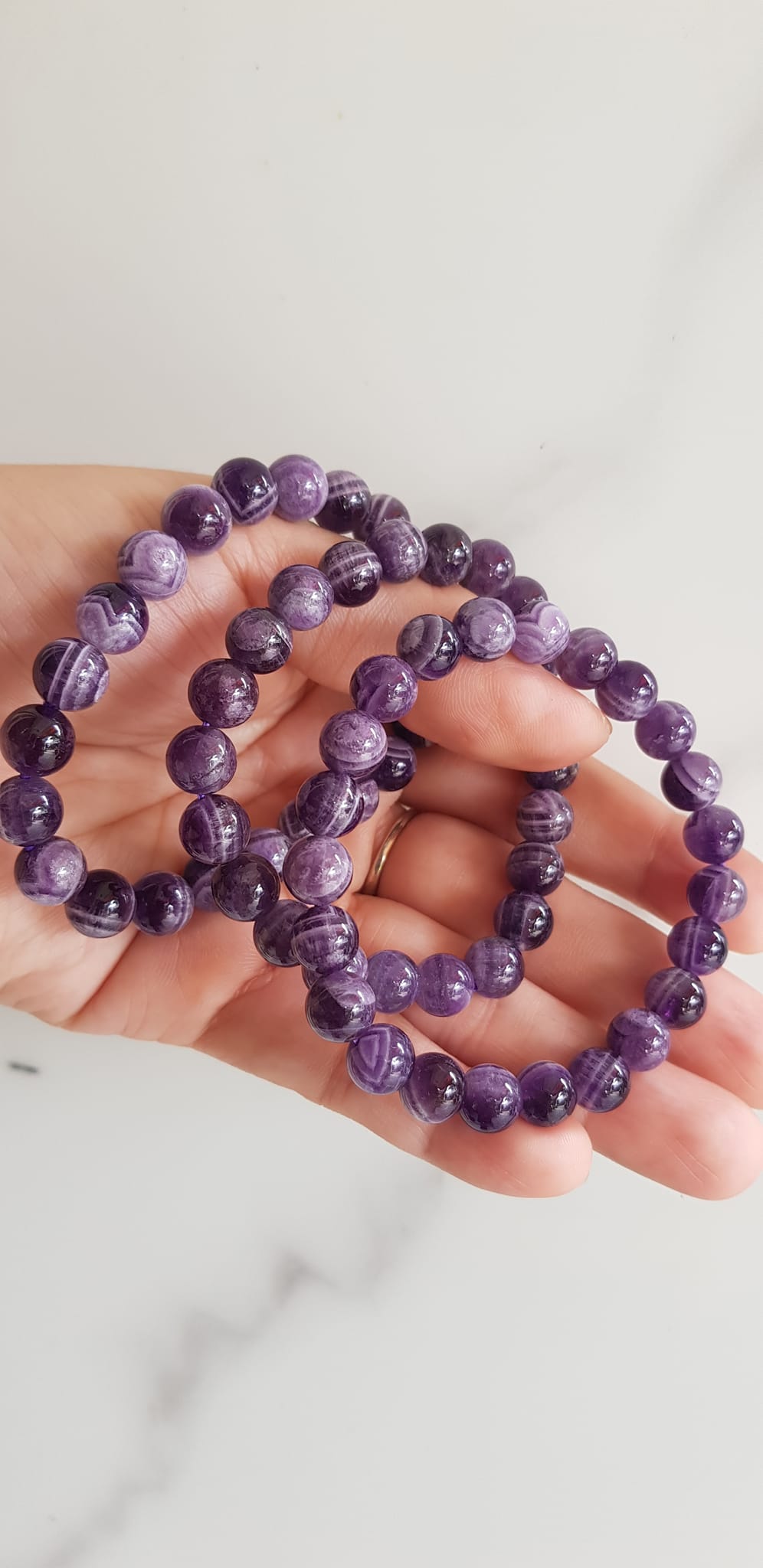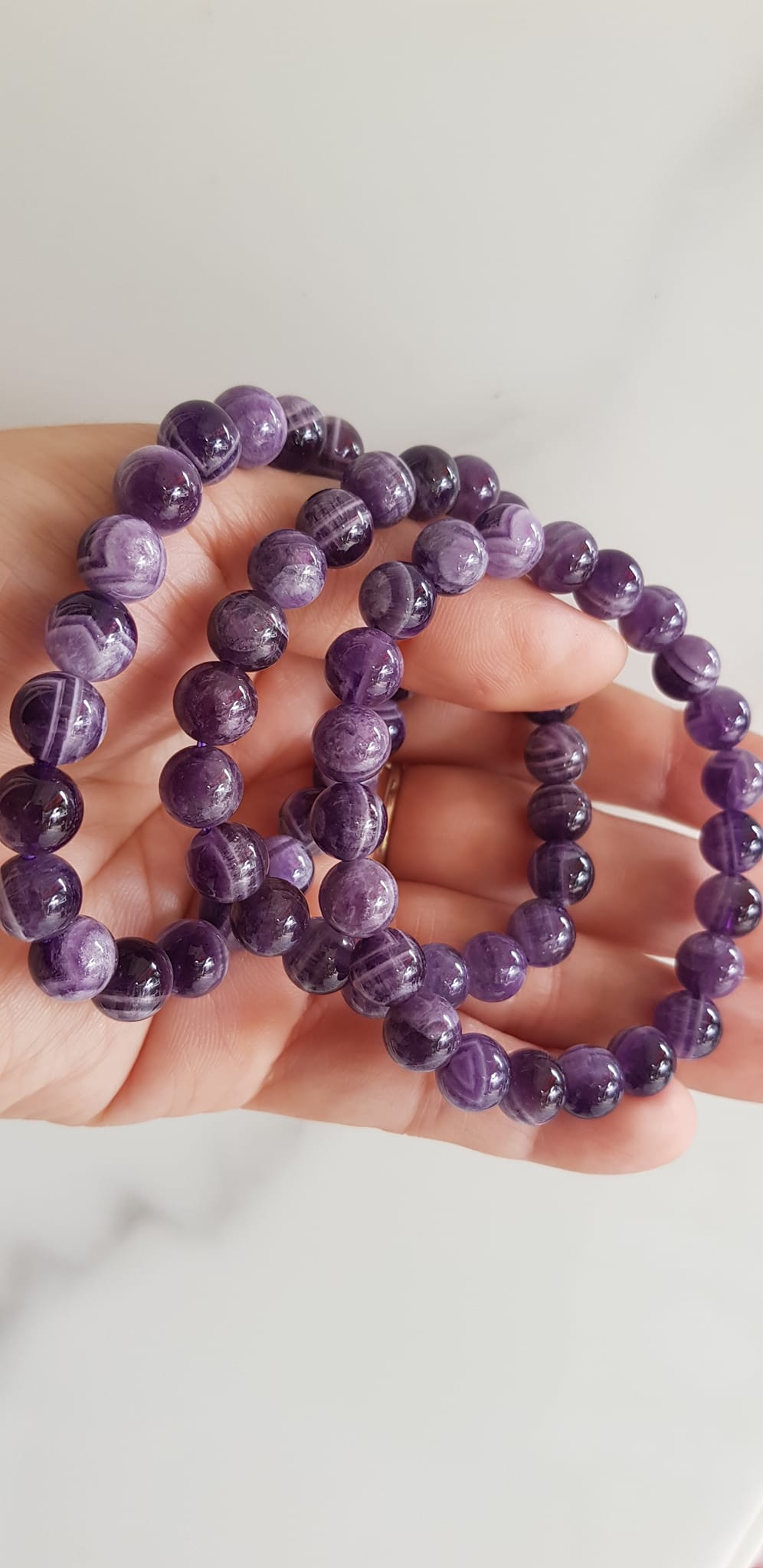 Vòng tay nữ đá thạch anh tím vân mới 8mm mệnh hỏa mệnh thổ rẻ đẹp đeo tốt sức khỏe, tim mạch, ay mắn