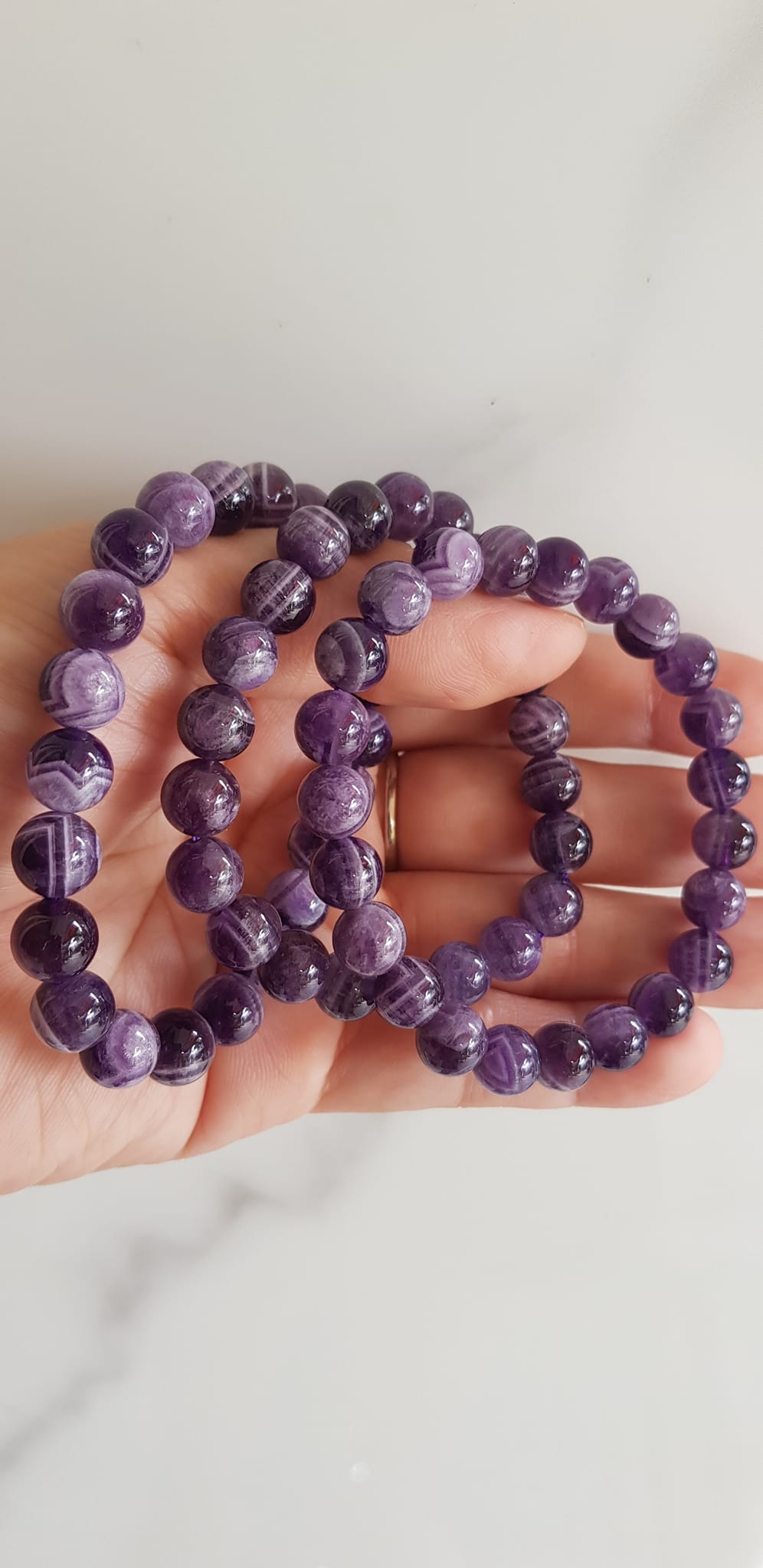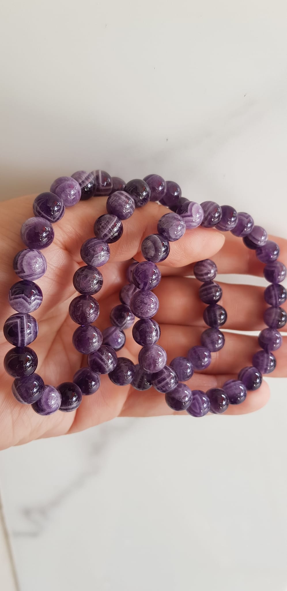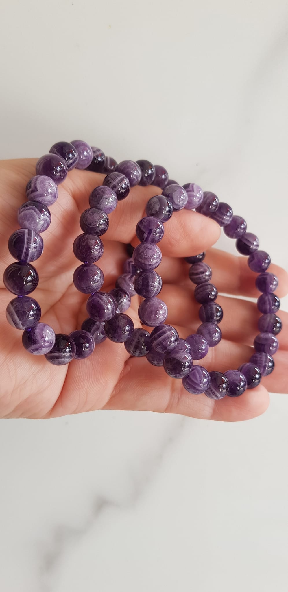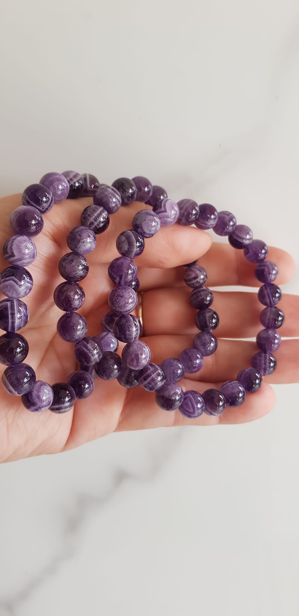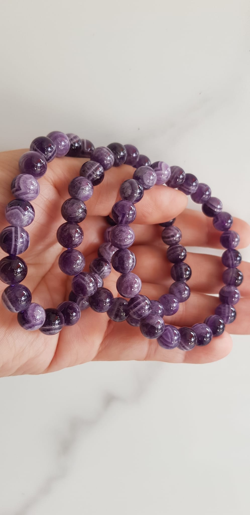 Vòng tay nữ đá thạch anh tím vân mới 8mm mệnh hỏa mệnh thổ rẻ đẹp đeo tốt sức khỏe, tim mạch, ay mắn