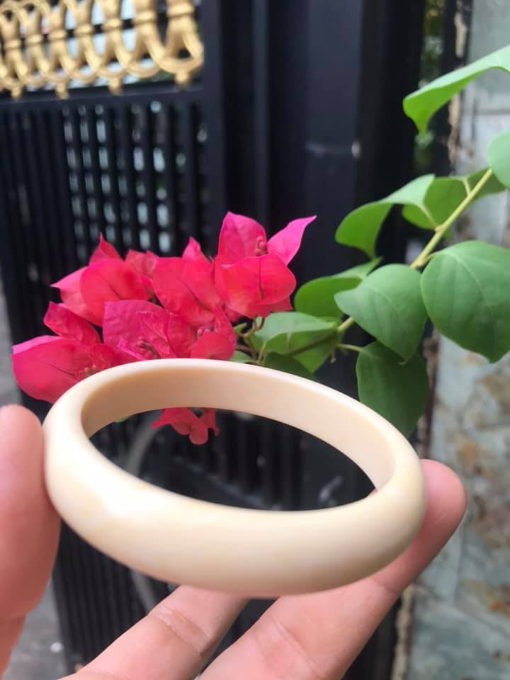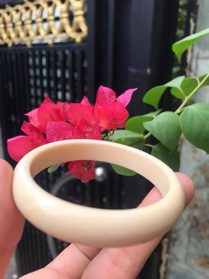 ✨VÒNG TAY NỮ ĐEO MÀU TRẮNG GIẢ NGÀ HAY GỌI LÀ XƯƠNG MỸ NGHỆ SIZE 52MM x Bản Cao 12mm x Dầy 6,5mm NỮ NẶNG 50KG TRỞ XUỐNG ĐEO Ạ