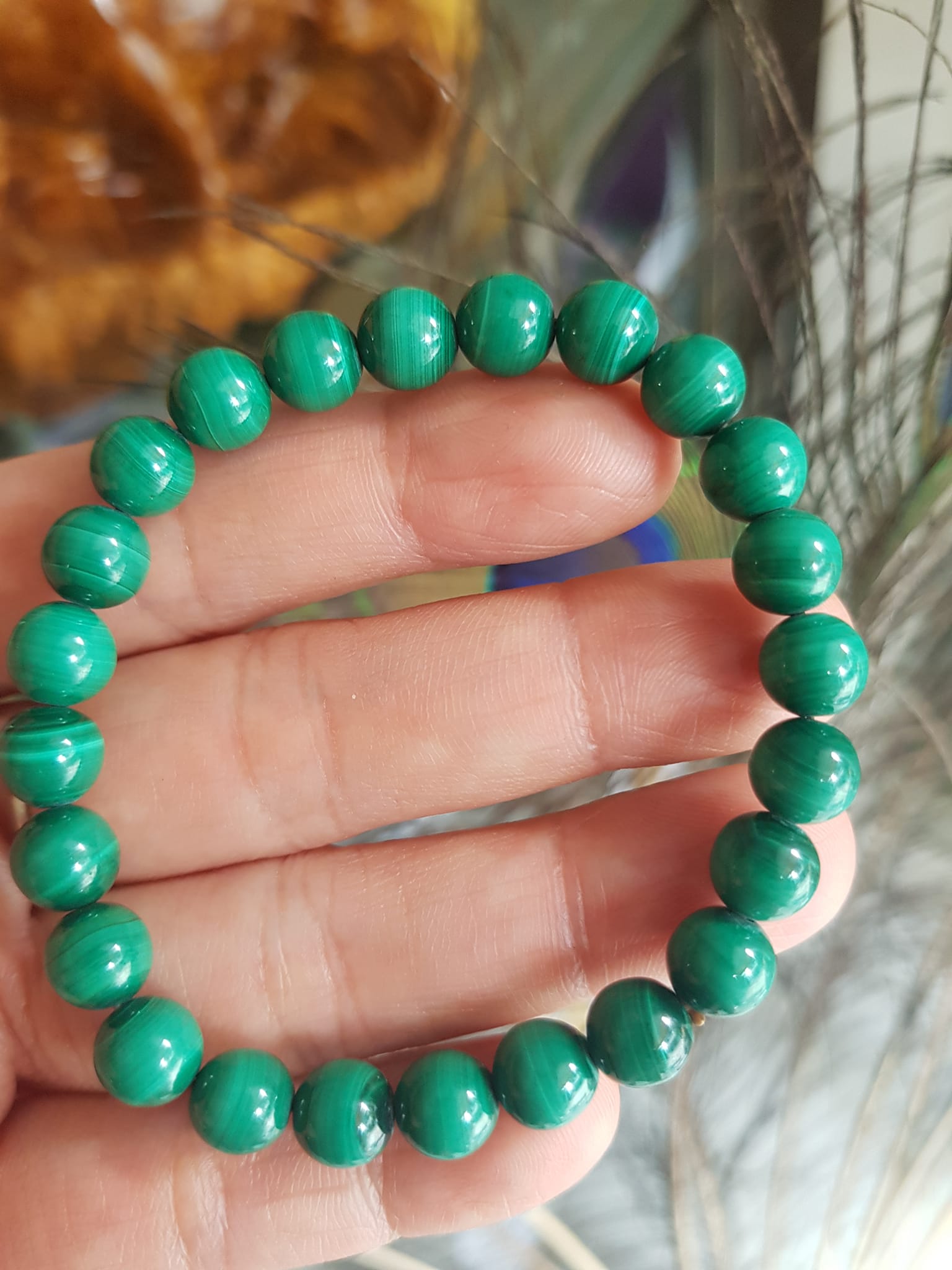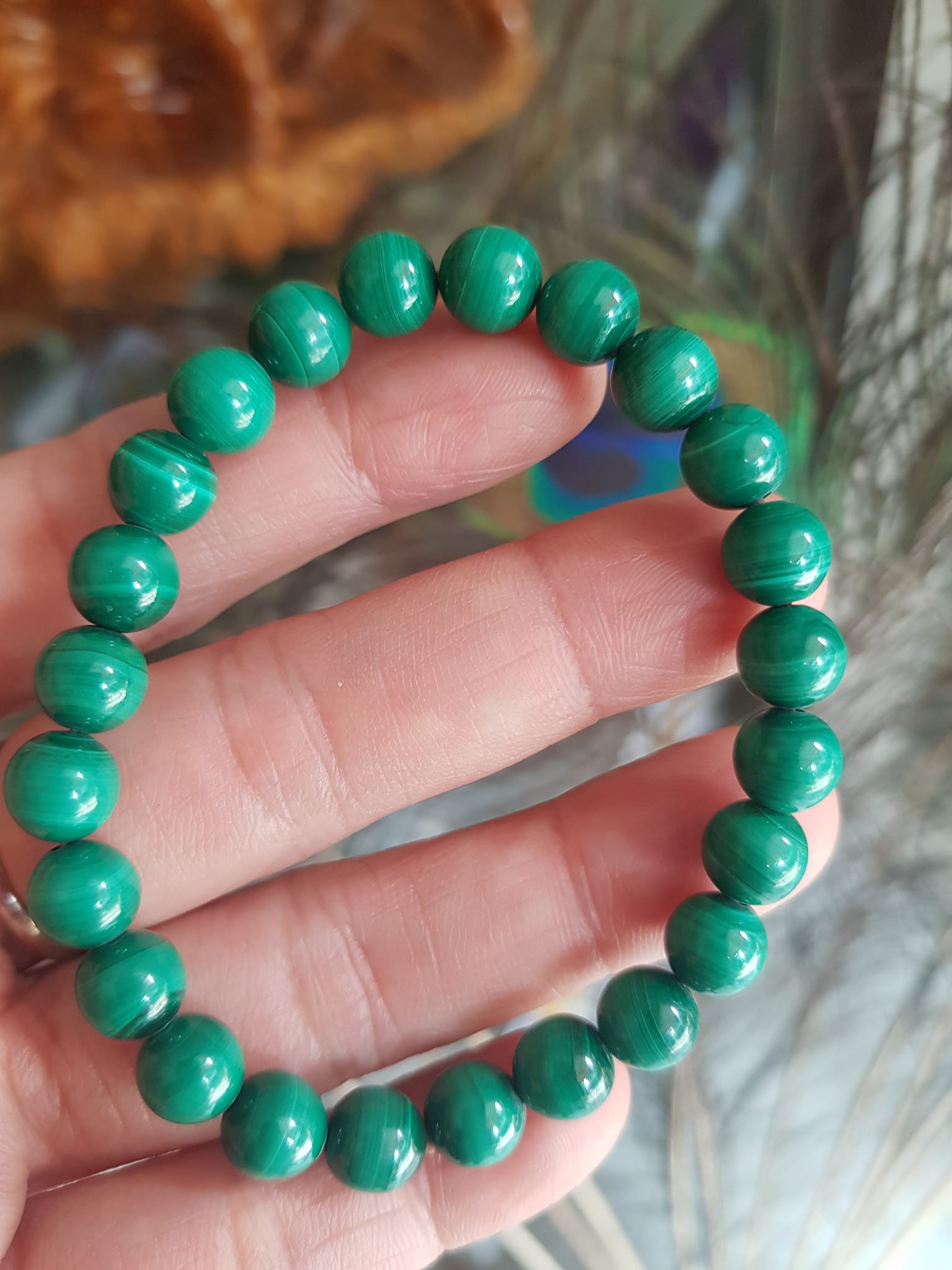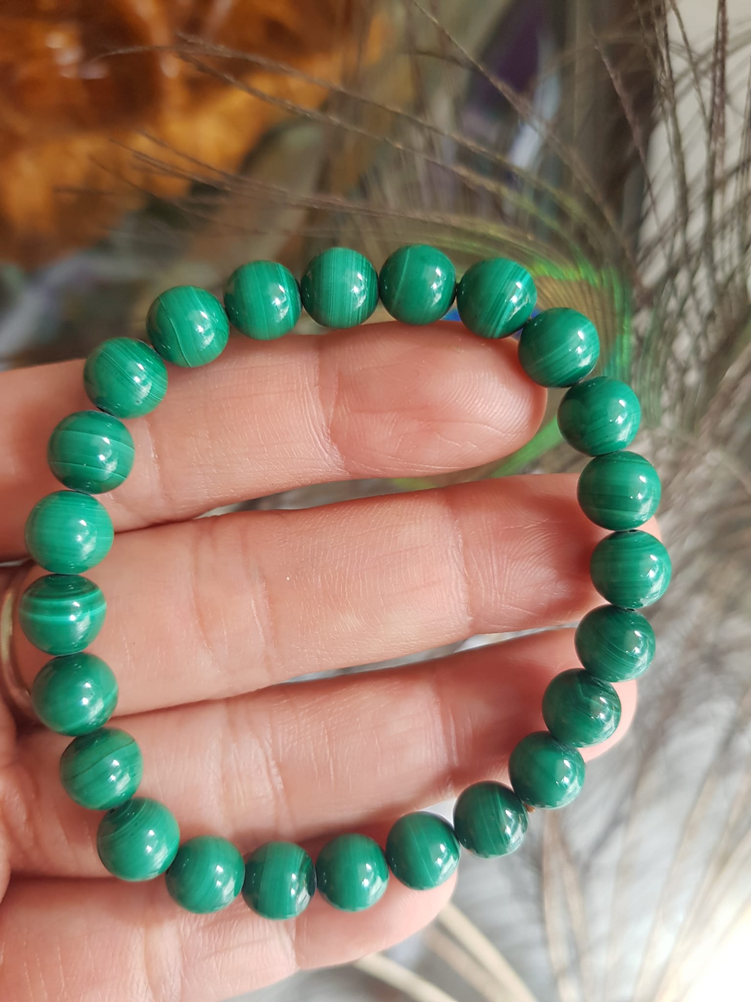 ✨Vòng Tay Phong Thủy Đá Lông Công hay gọi là đá Malachite tự nhiên bóng đẹp Size vòng 7,5mm nữ mệnh Mộc mệnh Hỏa Vòng Xanh Đá Lông Công Vân tự nhiên đẹp đeo tốt sức khỏe, đẹp, may mắn trong công việc ạ