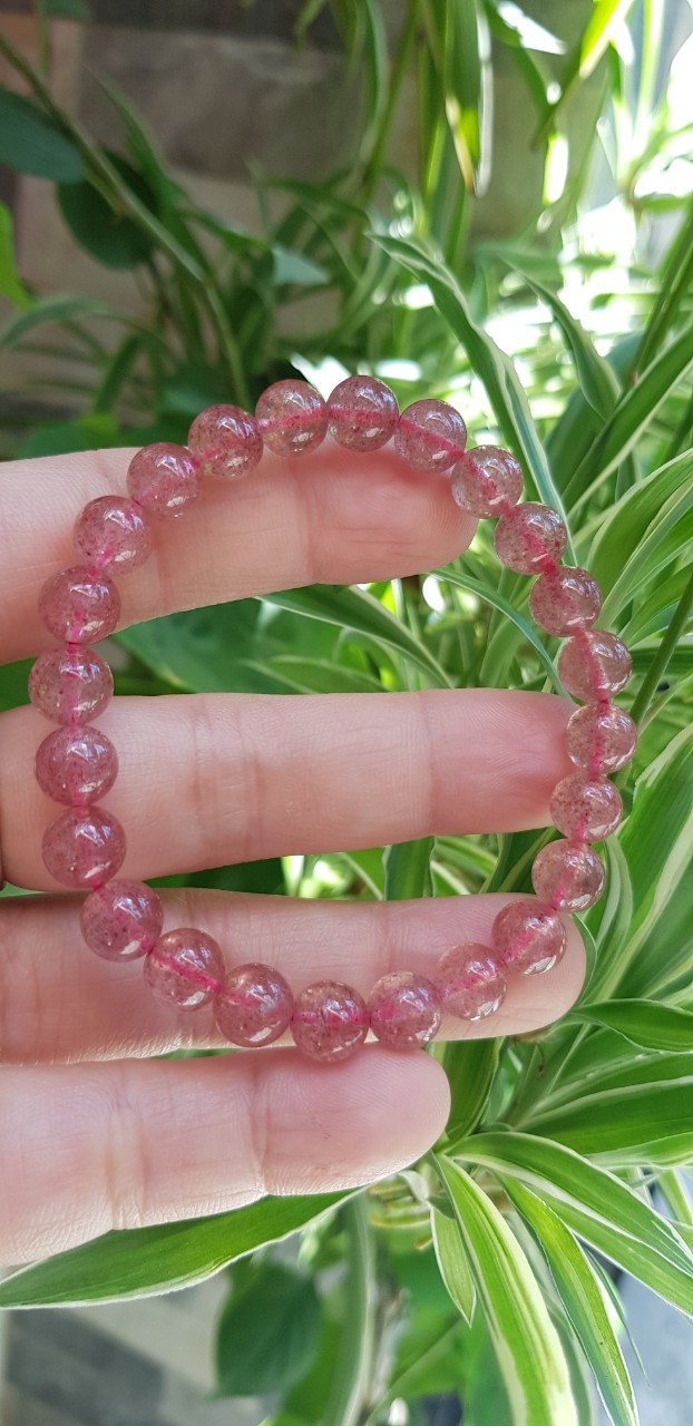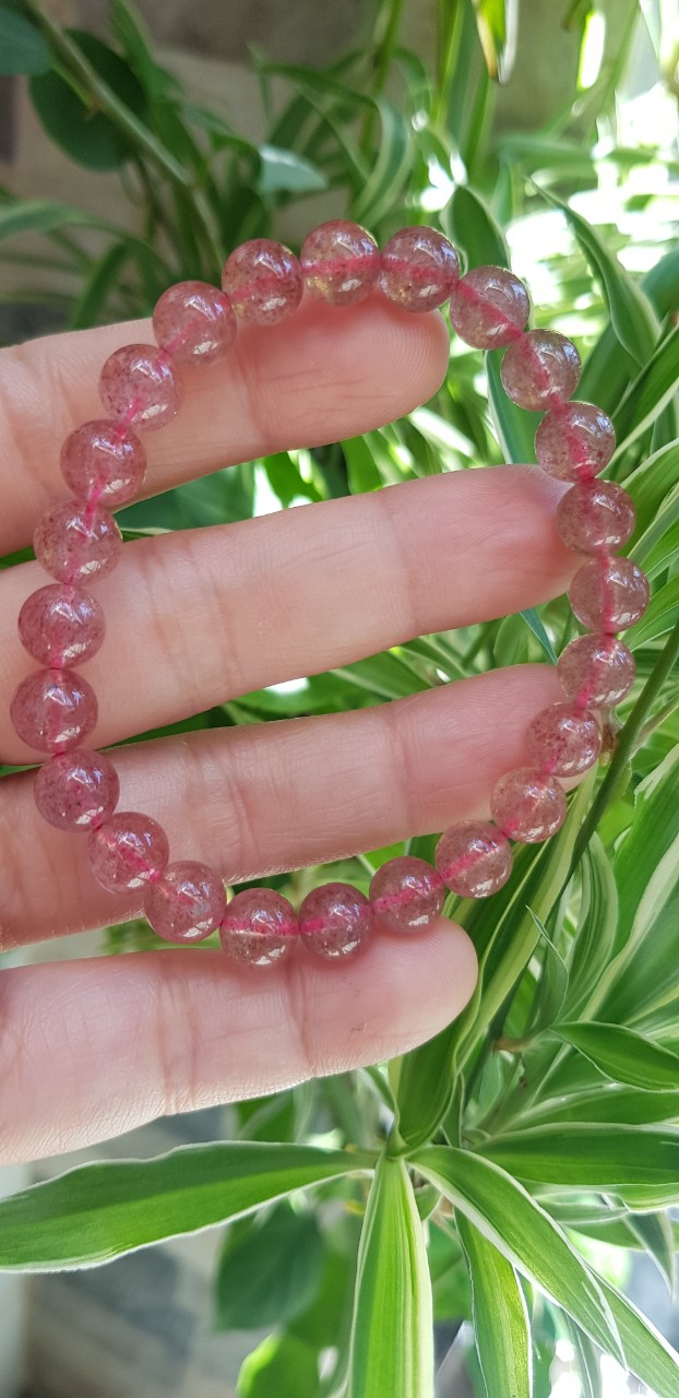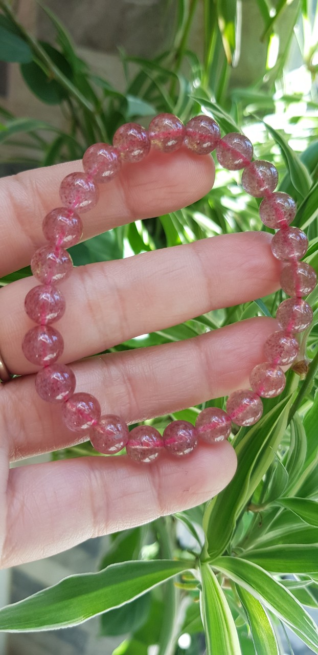 Vòng tay phong thủy đá THẠCH ANH DÂU HỒNG size hạt 8mm tự nhiên là sản phẩm phong thủy với chất liệu Thạch Anh giúp mang lại may mắn, tốt cho sức khỏe và công việc cho người đeo.