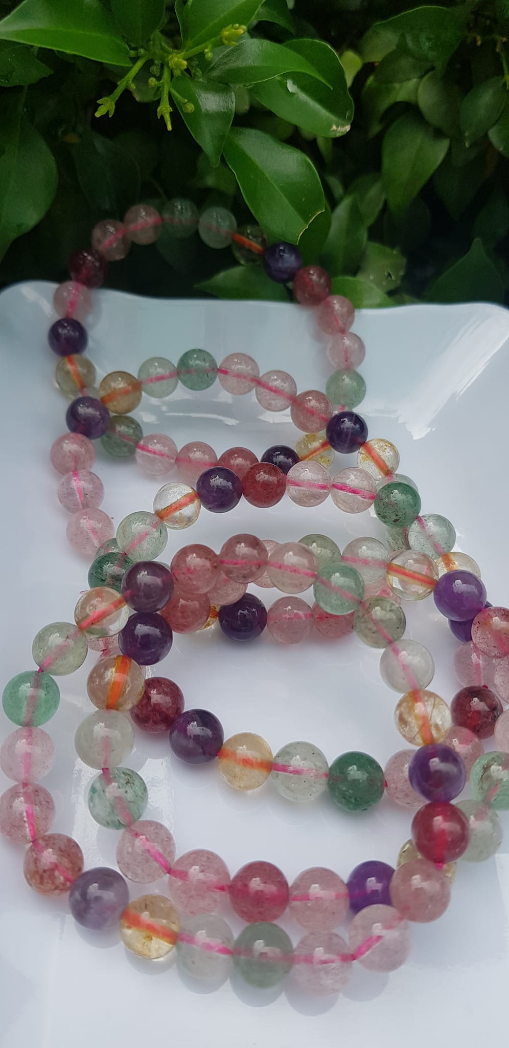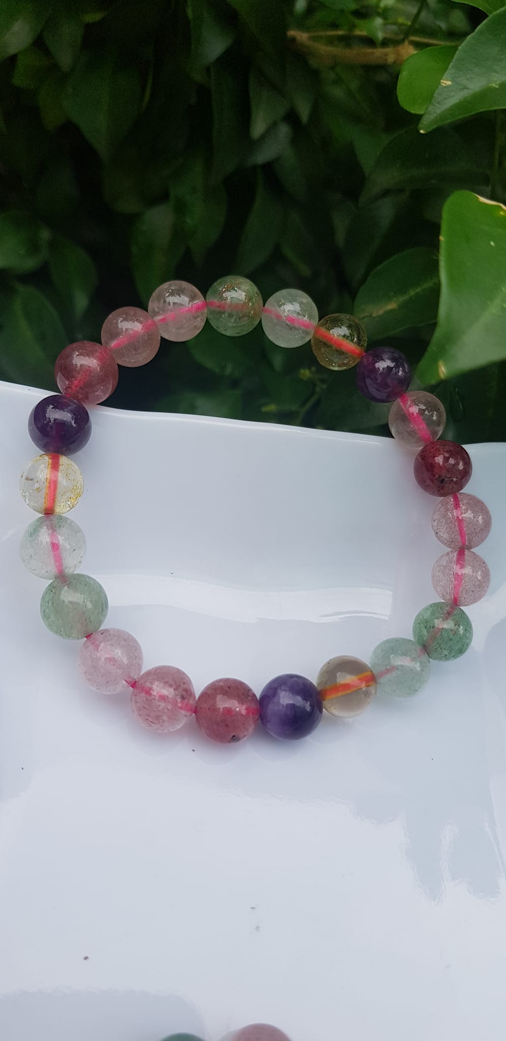 💥Vòng tay phong thủy may mắn đá thạch anh ngũ sắc tự nhiên 8mm bóng tuyệt đẹp đa sắc màu nữ đeo xinh