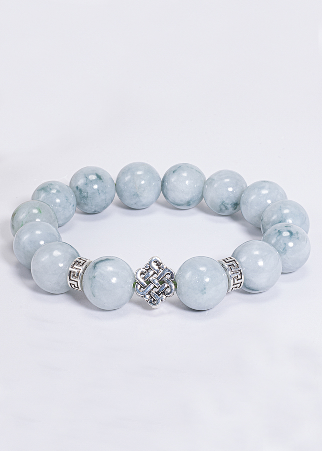Vòng Tay Phong Thủy Nam Đá Cẩm Thạch Phỉ Thúy Phối Charm Kết Đồng Tâm Bạc (14mm) Mệnh Mộc, Hỏa