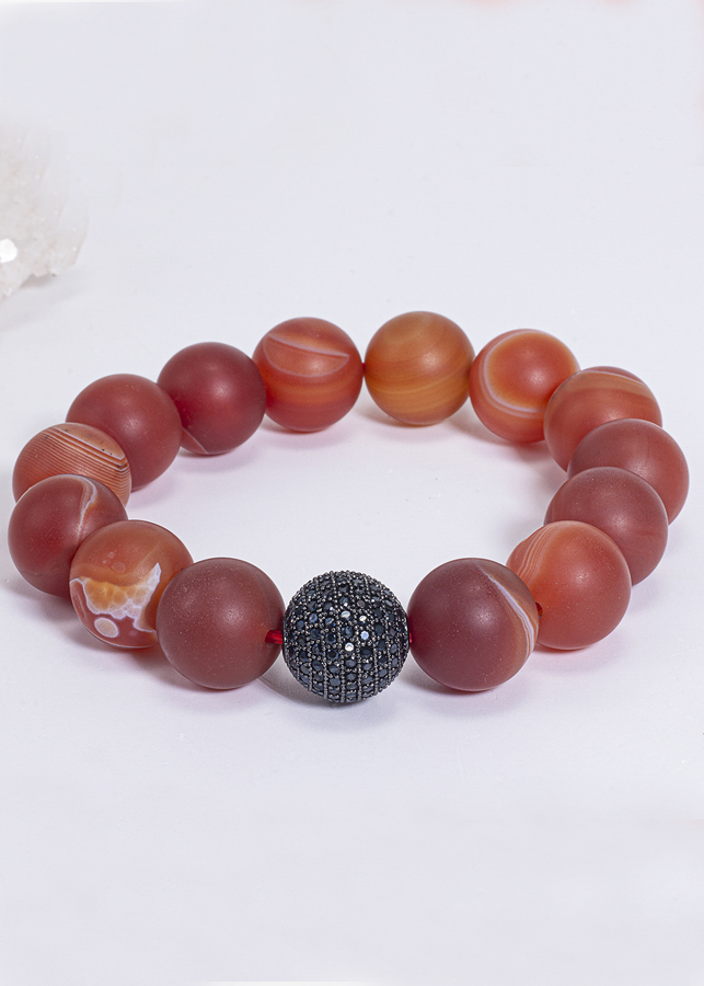 Vòng Tay Phong Thủy Nam Đá Mã Não Đỏ Nhám Phối Charm Cầu Đính Đá (14mm) Mệnh Hỏa, Thổ Từ lâu người ta đã biết đến đá Mã não như là tiếng gọi của thiên