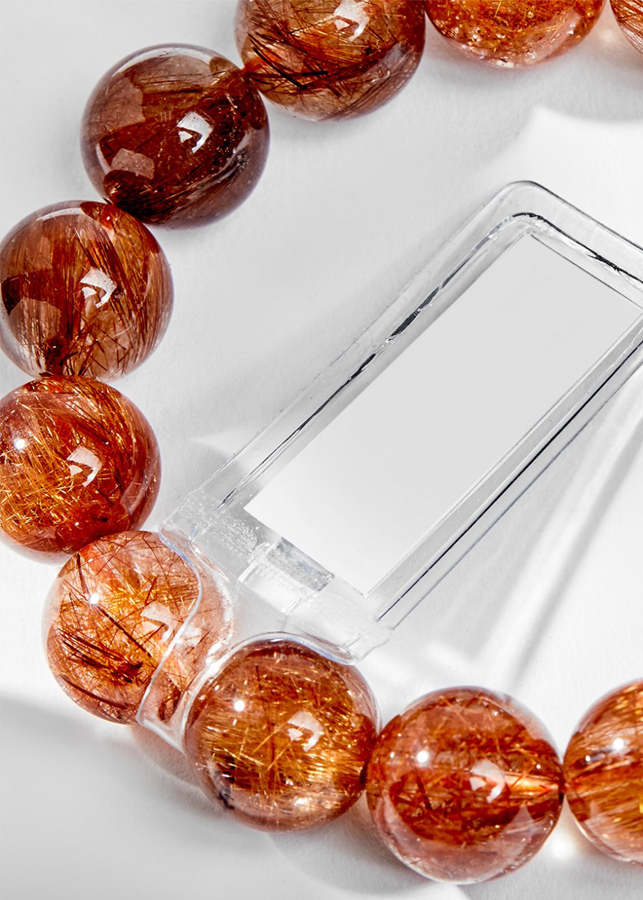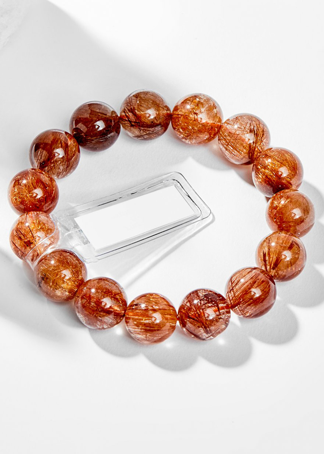 Vòng Tay Phong Thủy Nam Đá Thạch Anh Tóc Đỏ (11mm) Mệnh Hỏa, Thổ